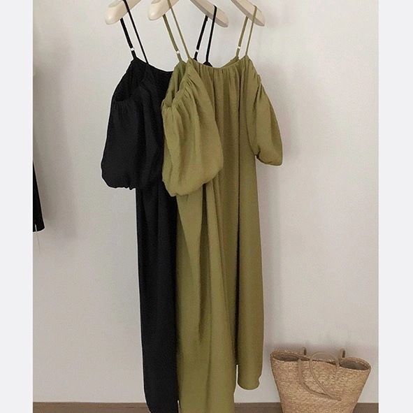 ロングスカート夏の優しさ系ロングスカート 肉隠しスリーブ 垂感皺 やせてゆとりがある ワンピース ワンピース その他 スカート