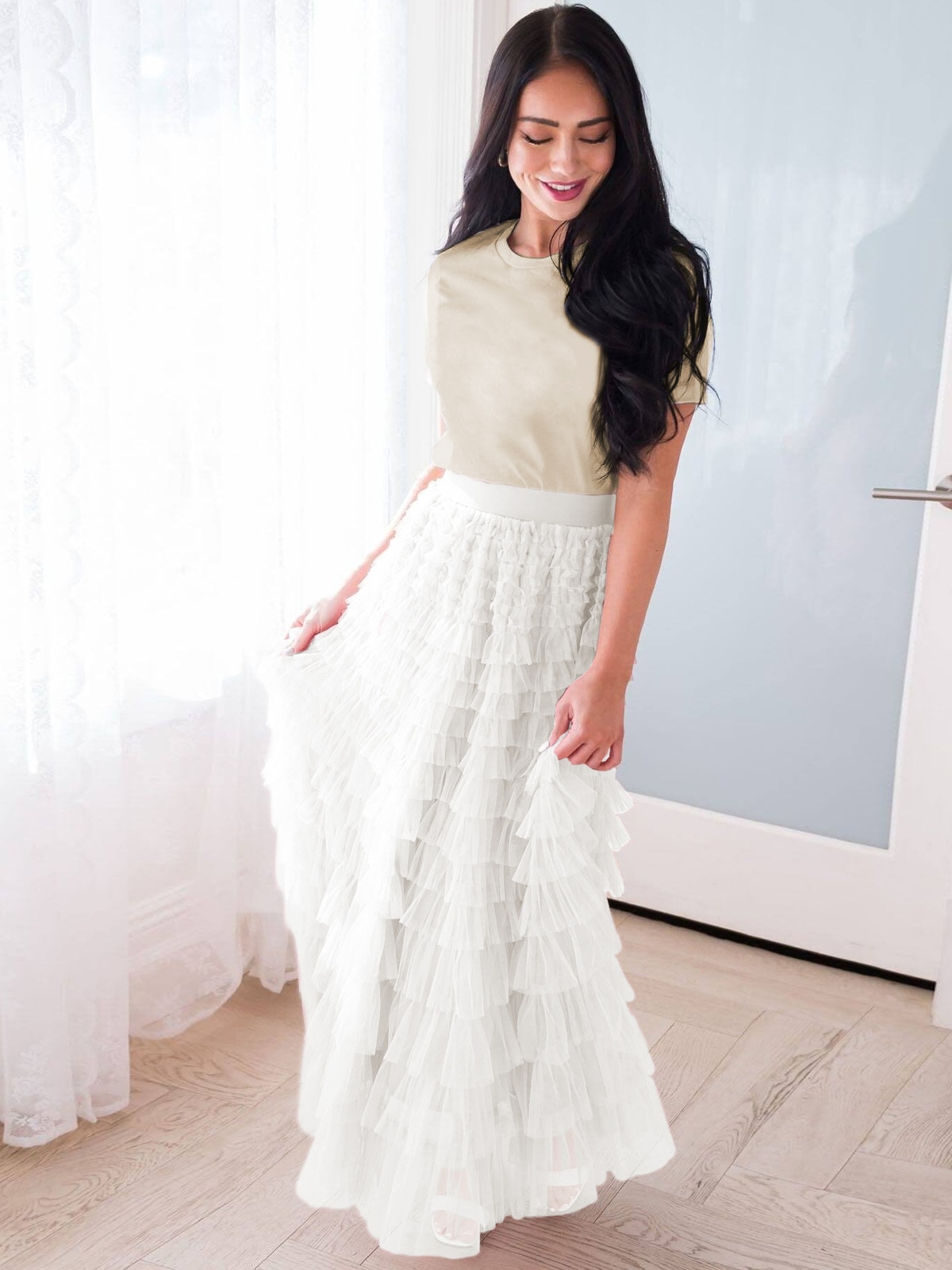 シフォンブラウス シアーブラウス ボリューム袖