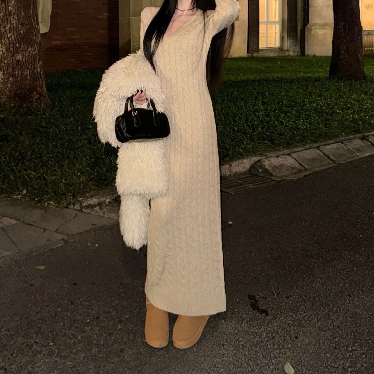 ワンピース 2025 秋冬新作 レトロ ツイスト ニットワンピース レディース やせる ボトム ロングドレス 韓国ファッション その他 ワンピース ドレス