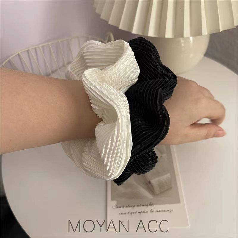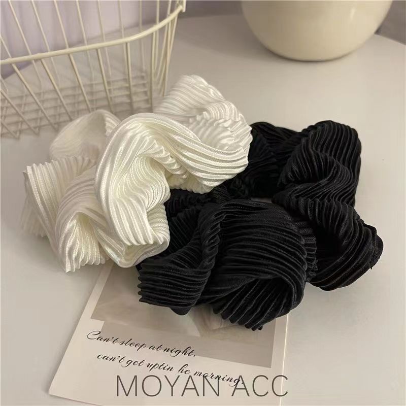 シルキー超仙クリーム光沢大判肥えた腸のシュシュ純色優しいフレンチレトロな皺のロマンチックな髪飾り女 ヘアゴム シュシュ