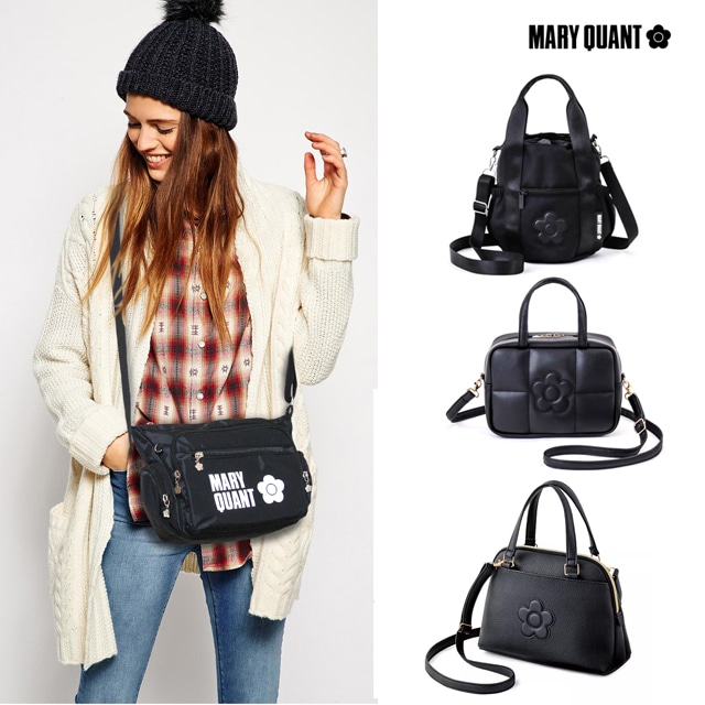 マリークヮント 大人気 マリクワ コスメティック エンボス加工 2Way ショルダーバッグ コスメ収納バッグ ブラックカラー ショルダーバッグ