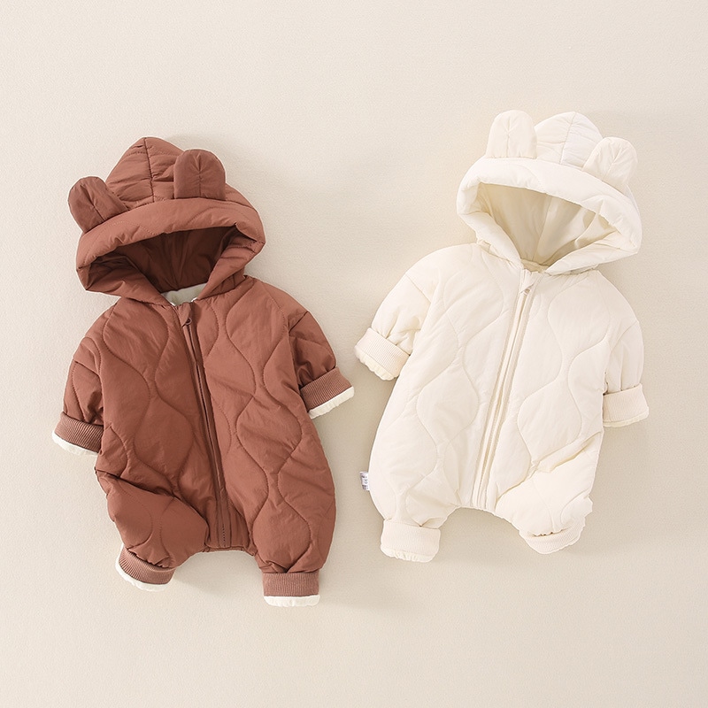 345678月 ベビー ウィンタースタイル ベルベット キルティング ジャンプスーツ 男の子 ベビー ウィンター フード付き ライトロンパース ロンパース