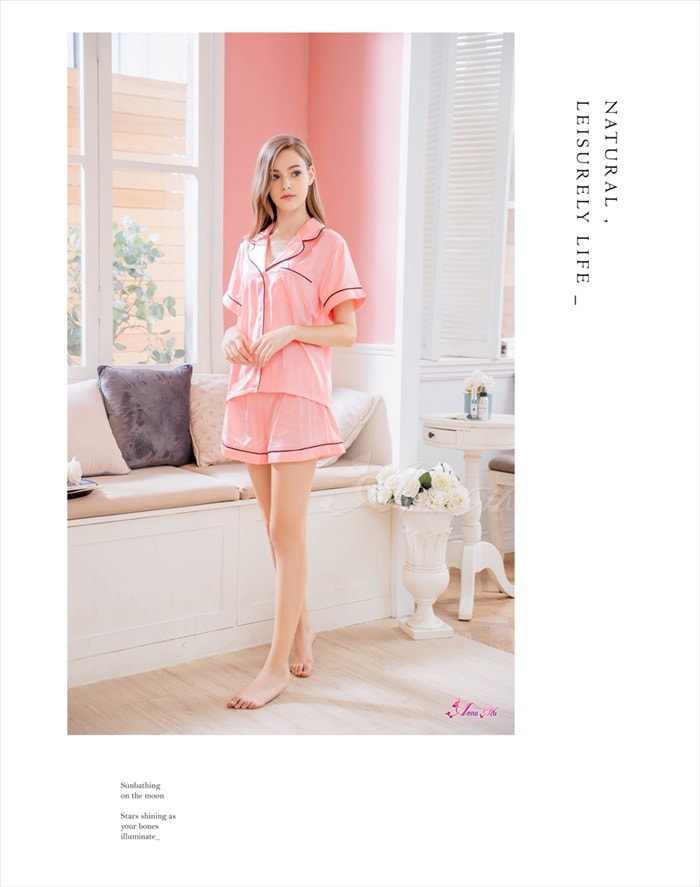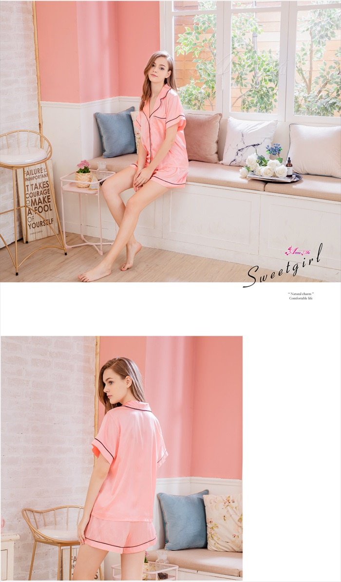 アンナムー ルームウェア キャミソール ショートパンツ 上下セット ピンク サテン ナイトウェア パジャマ 部屋着 寝巻 寝間着 セットアップ シンプル おしゃれ 可愛い z2457-b