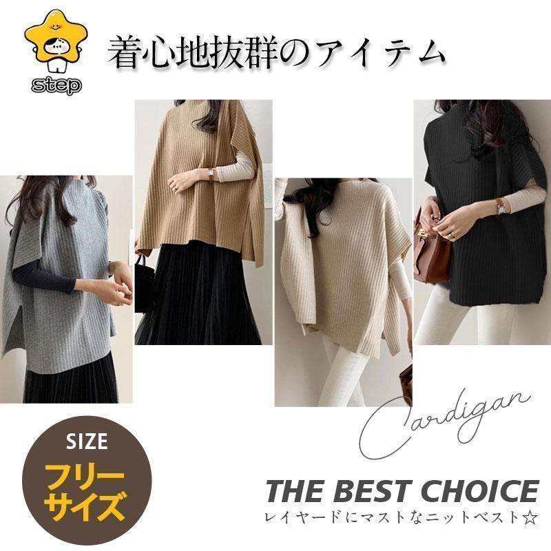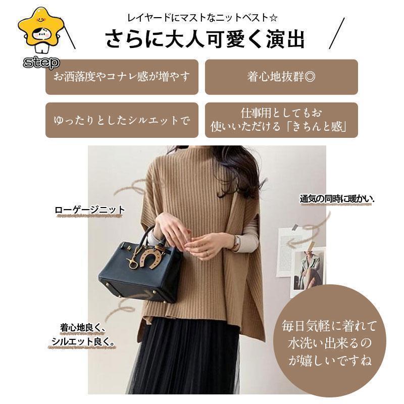 CHUNKY 卒業式 母 ベスト ニットベスト レディース ポンチョ ローゲージニット チャンキー ゆったり プルオーバー ジレー セーター 秋物 レイヤード フレンチスリーブ