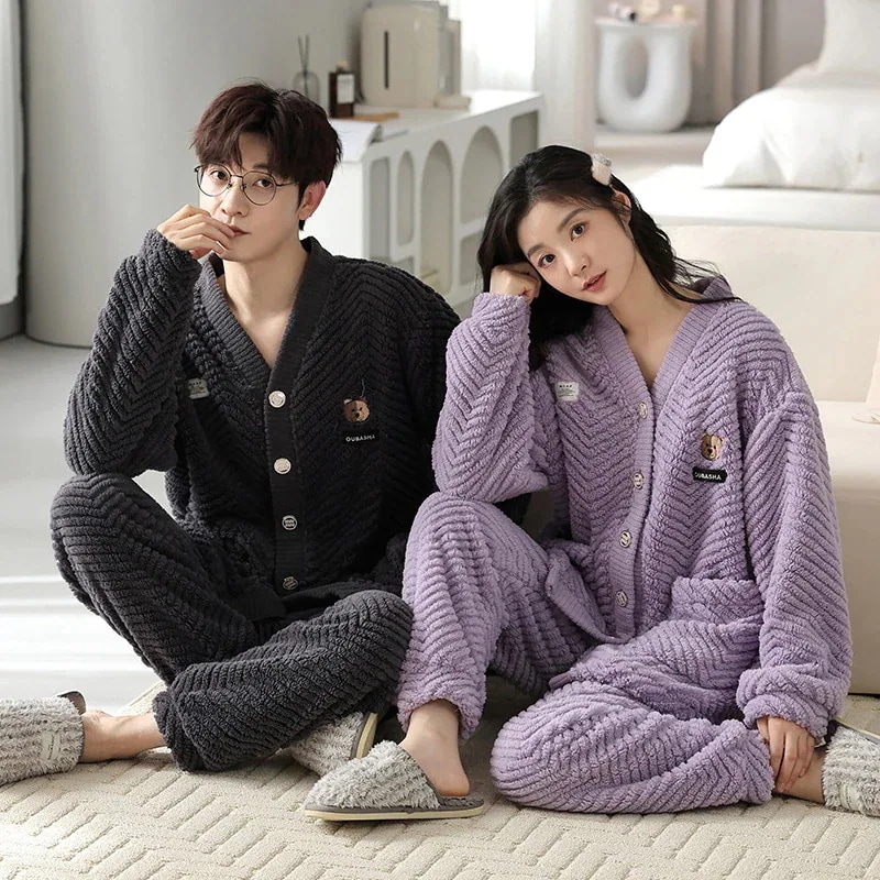 秋冬 レディースパジャマ ファッションルームウェア セットアップ カップル 長袖tシャツ上下セットメンズ 大きいサイズ ナイトガウン 可愛い ペアルック 男女 韓国 人気 部屋着 保温 防寒