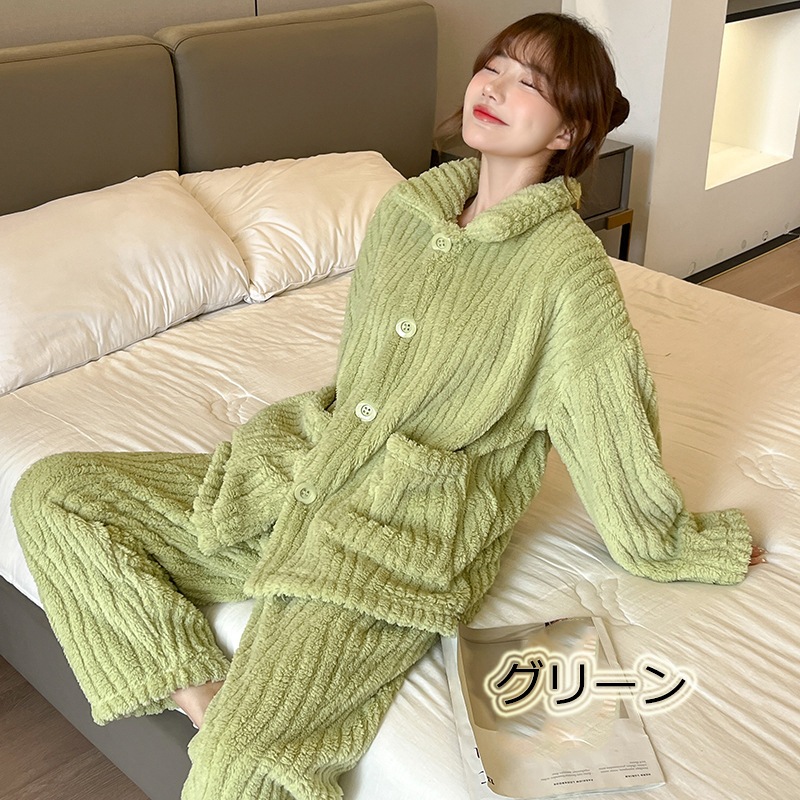 ルームウエア レディース パジャマ もこもこ 上下セット 前開き 秋冬ルームウェア 部屋着 長袖 プレゼント ふわふわ 寝間着 暖かい 2タイプ