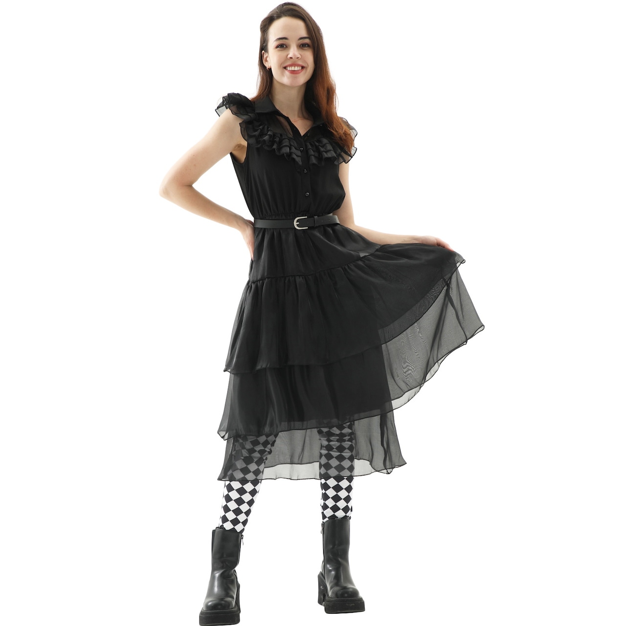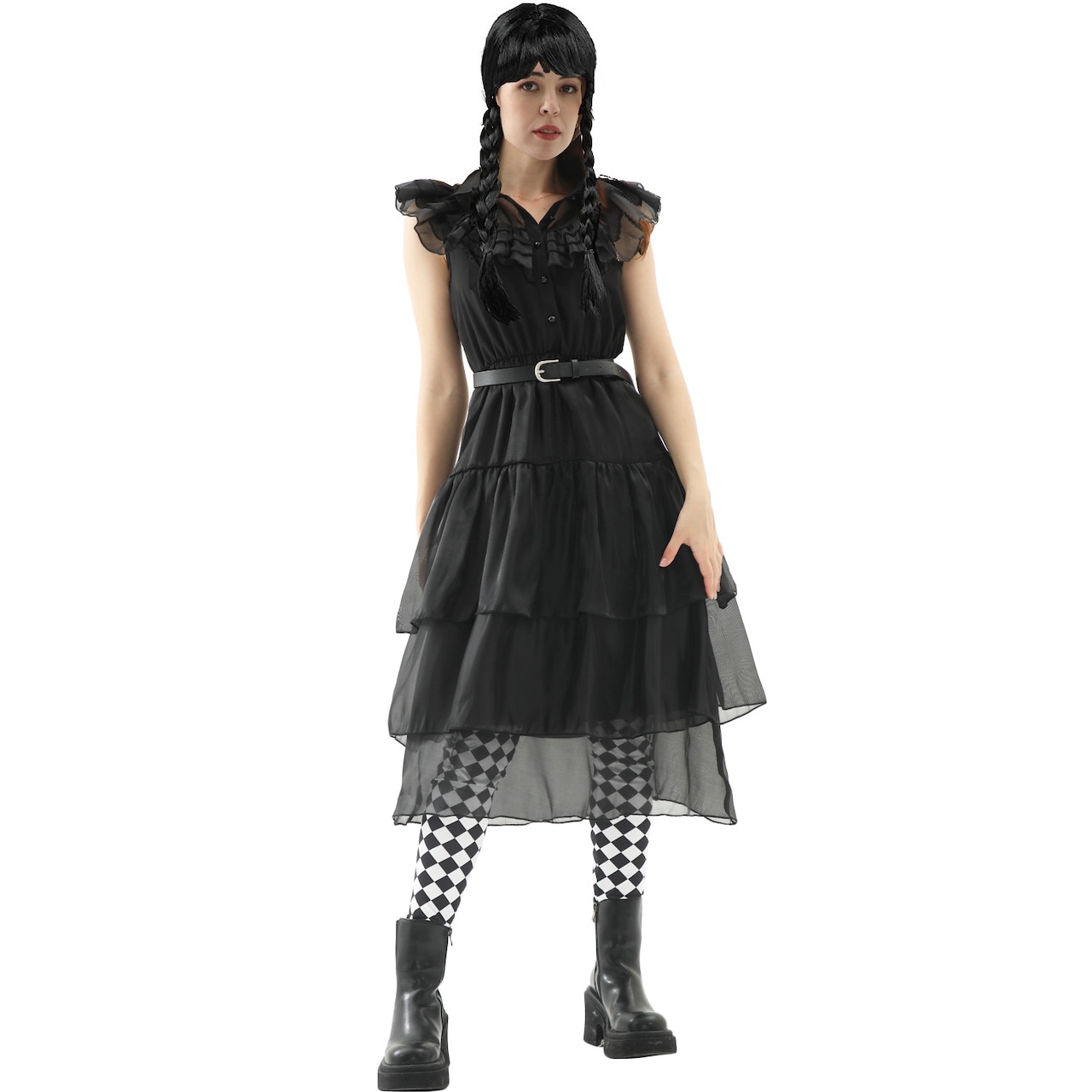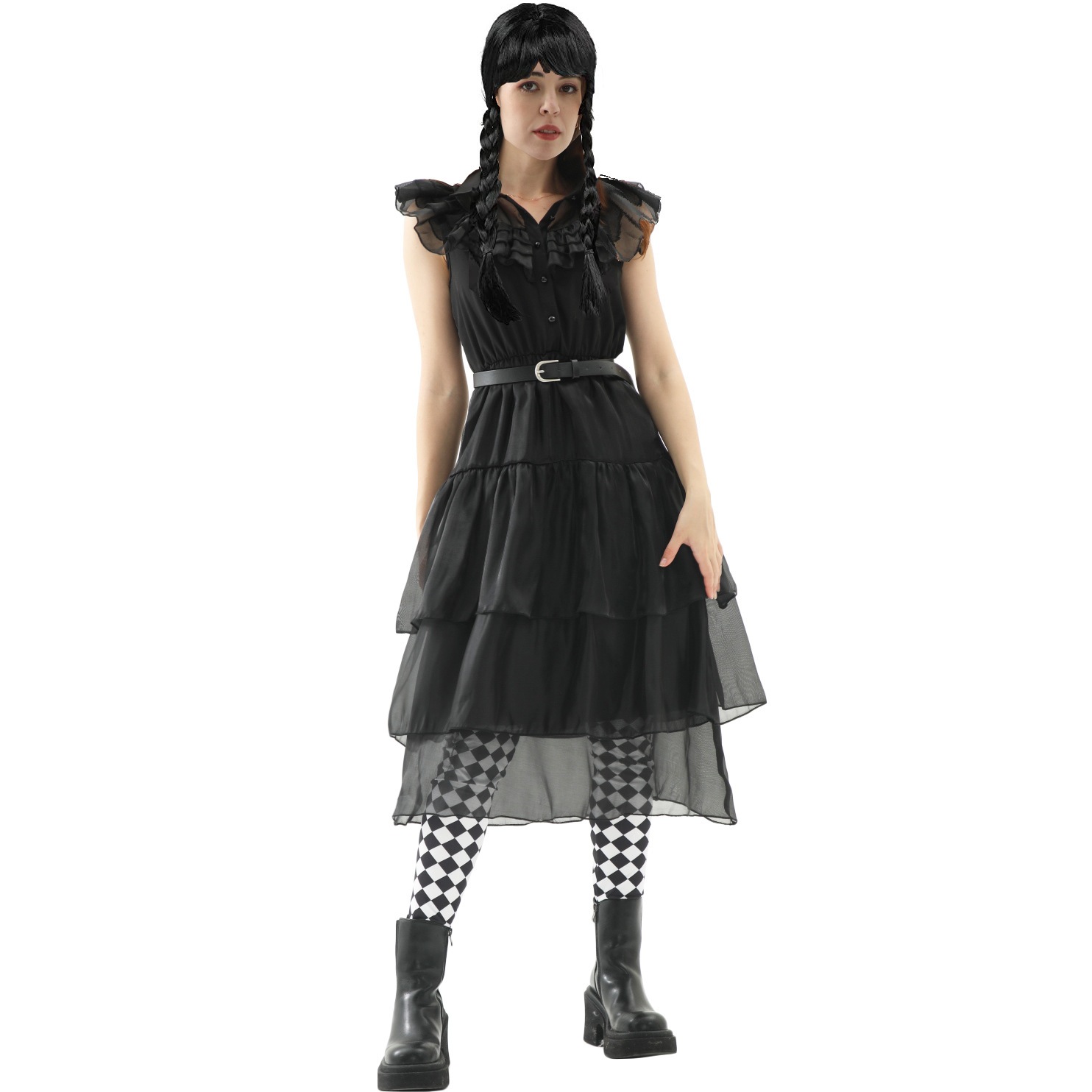 S-XL 大人の ベールスカートドレス アダムスファミリー コスプレ衣装 パンクスタイル ハロウィンパフォーマンスコスチューム コスプレ 変装 仮装