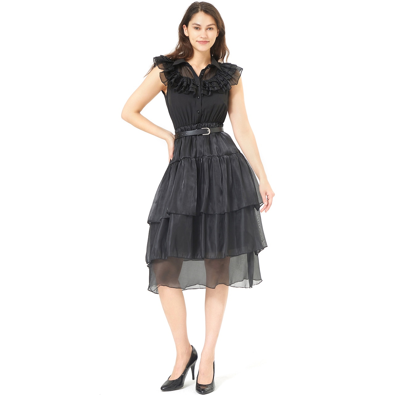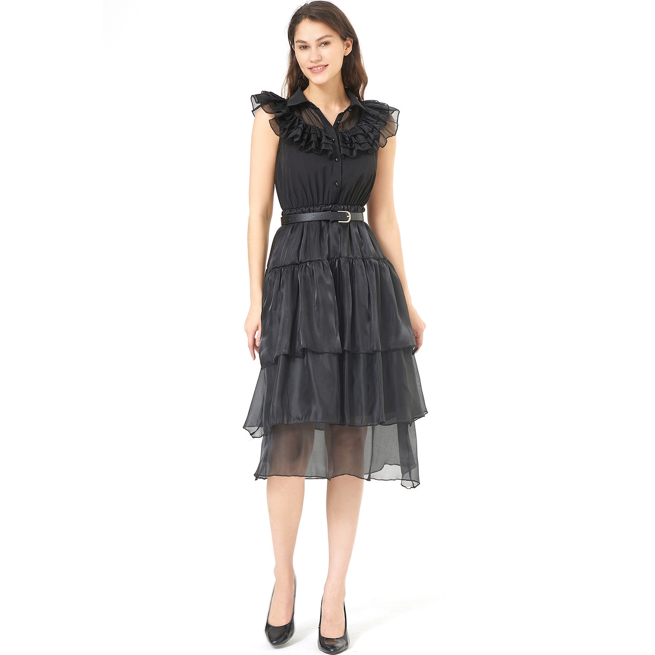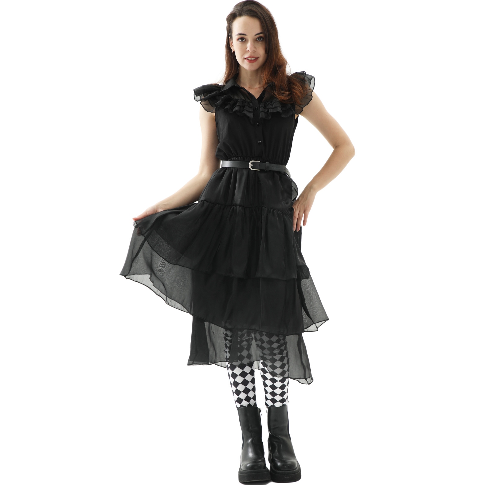 S-XL 大人の ベールスカートドレス アダムスファミリー コスプレ衣装 パンクスタイル ハロウィンパフォーマンスコスチューム コスプレ 変装 仮装