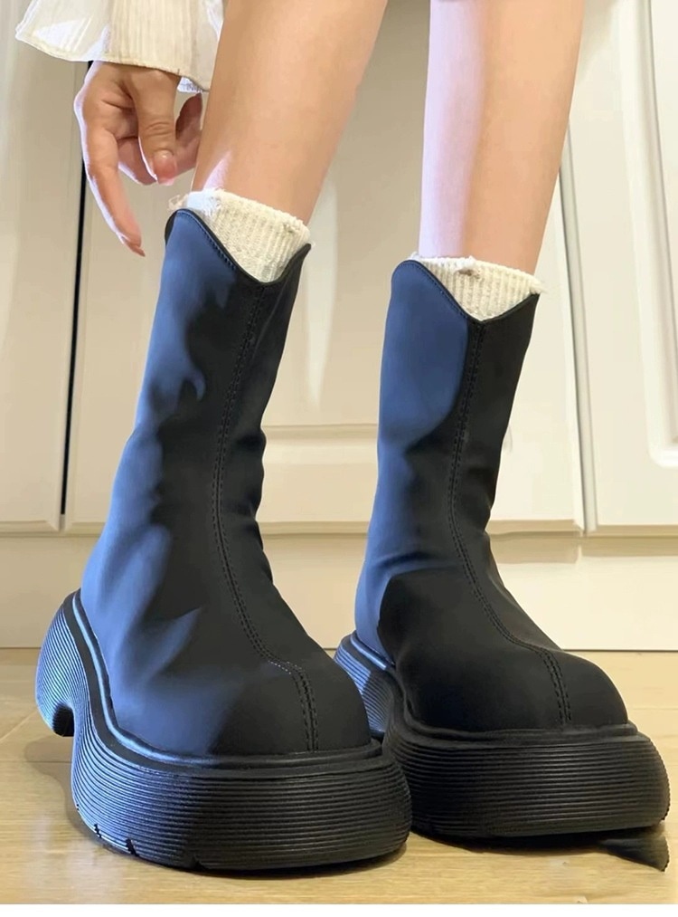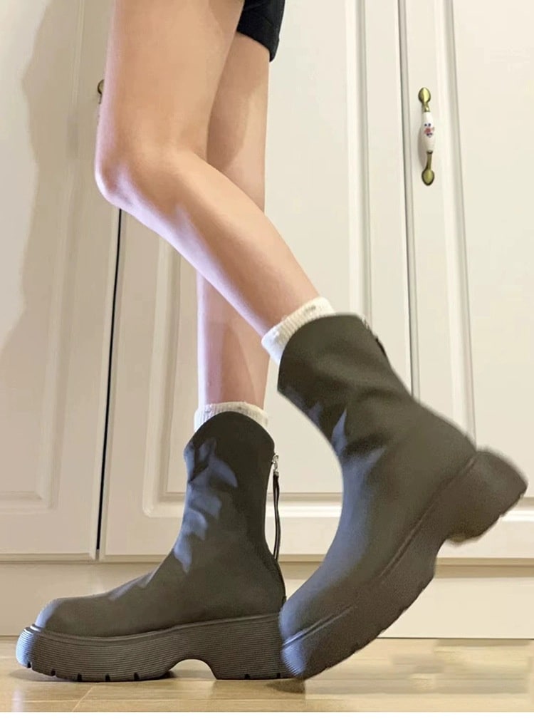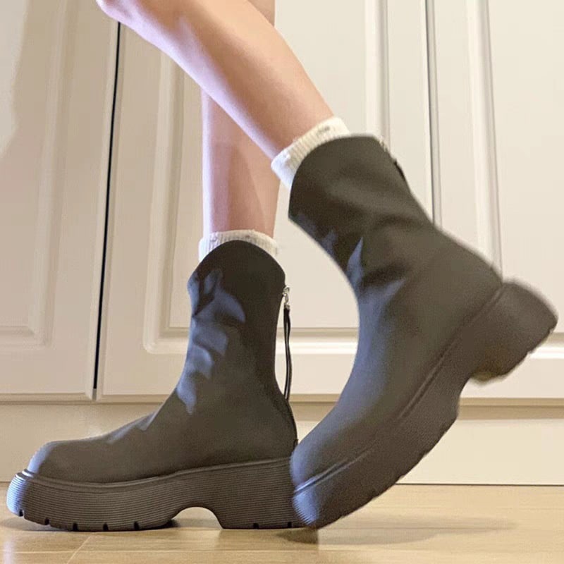 背の低い馬丁靴の女性秋冬英倫風の厚い底のチェルシーとベルベットのやせた短いブーツ その他 ブーツ ブーティー