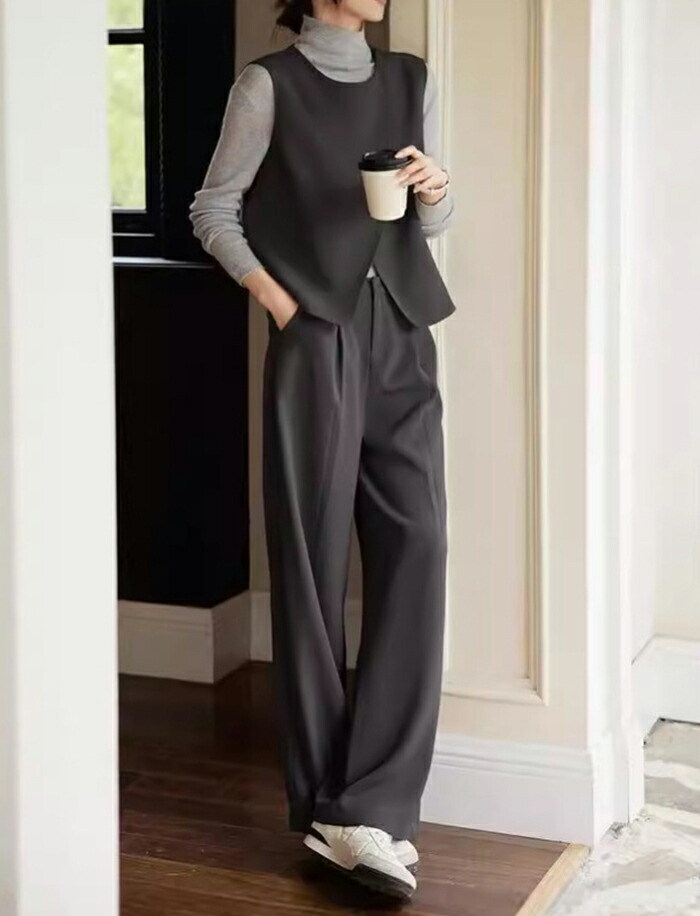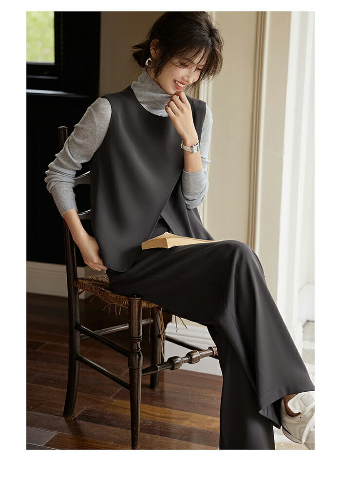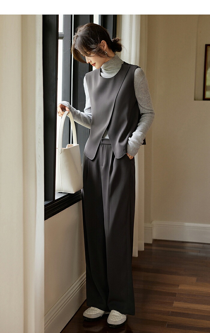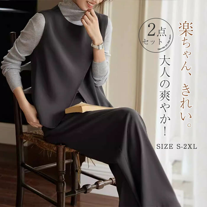 セットアップ ベスト パンツ レディース ジレ クルーネック スーツ パンツスーツ ママスーツ フォーマルスーツ トップス テーパードパンツ 大きいサイズ フォーマル オフィス ビジネス 仕事 通勤