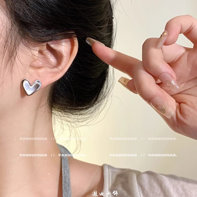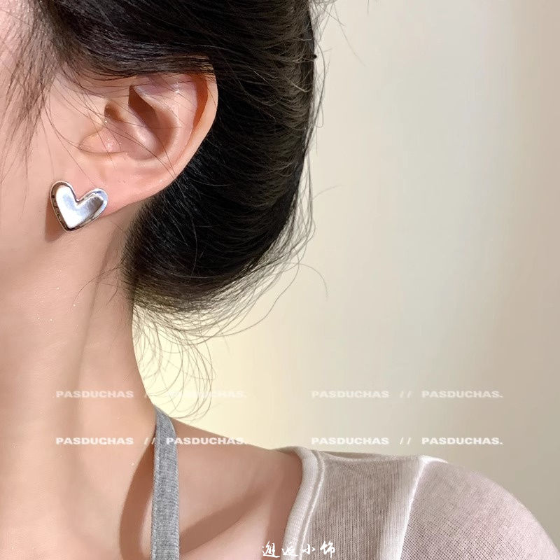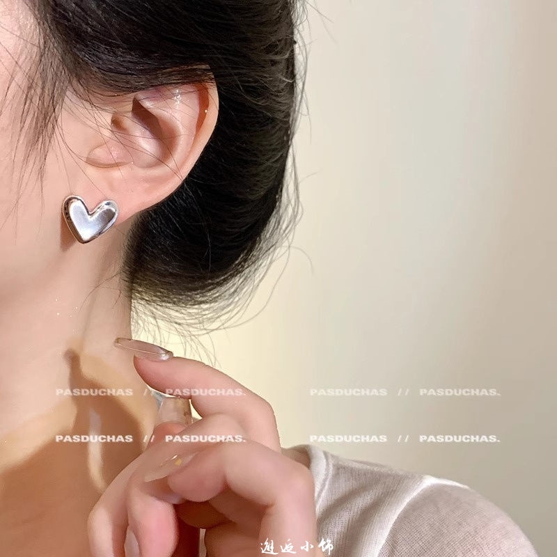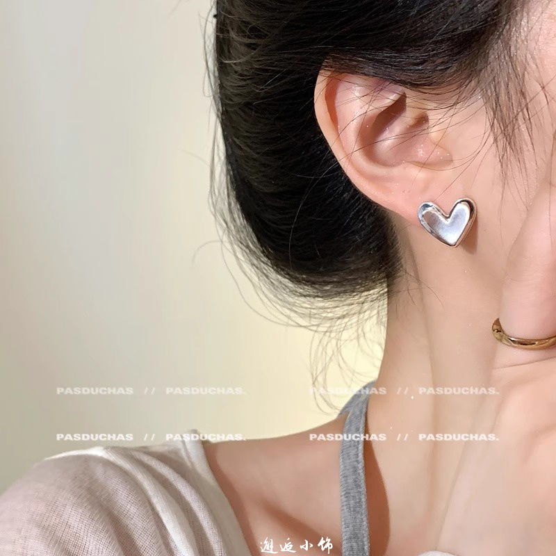 人気のピアス 気品のあるコンパクトなメタル糸引きシルバーのハートピアス2025新型高級感のある小人数デザインのイヤリング イヤリング