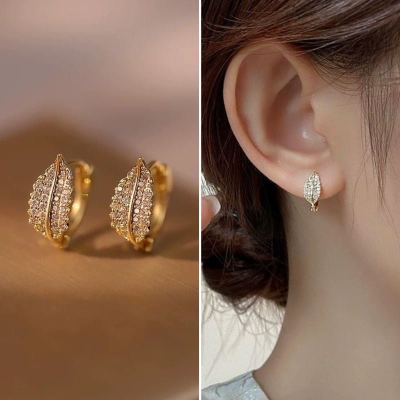 人気のピアス コンパクトで洗練された木の葉のイヤリング耳掛け女性向け高級感のある上品なピアス2025年新作イヤリング イヤリング