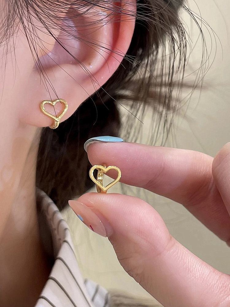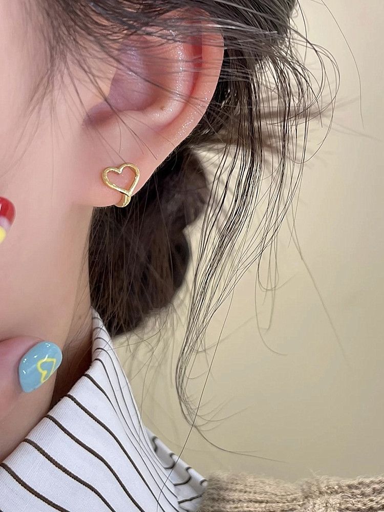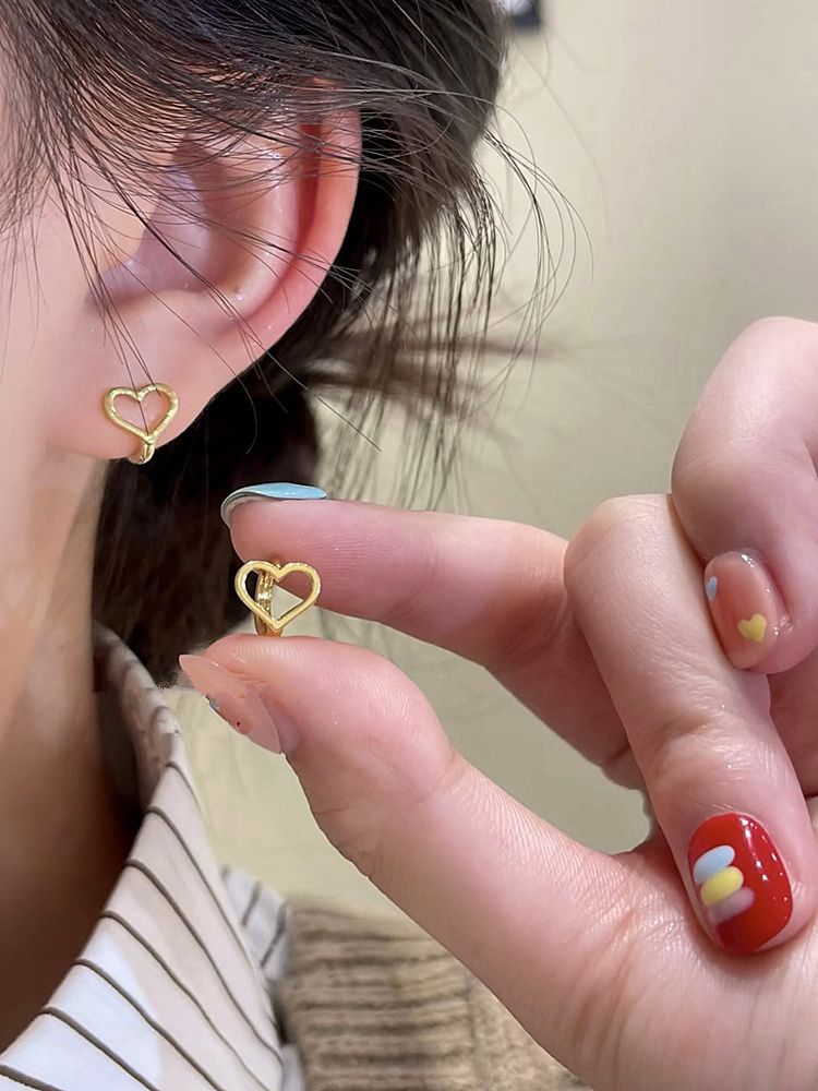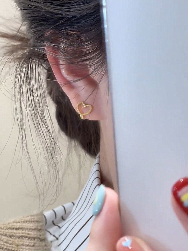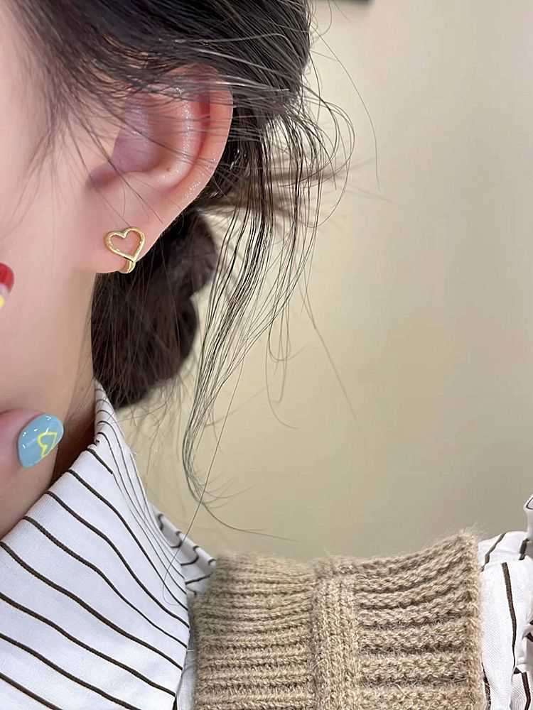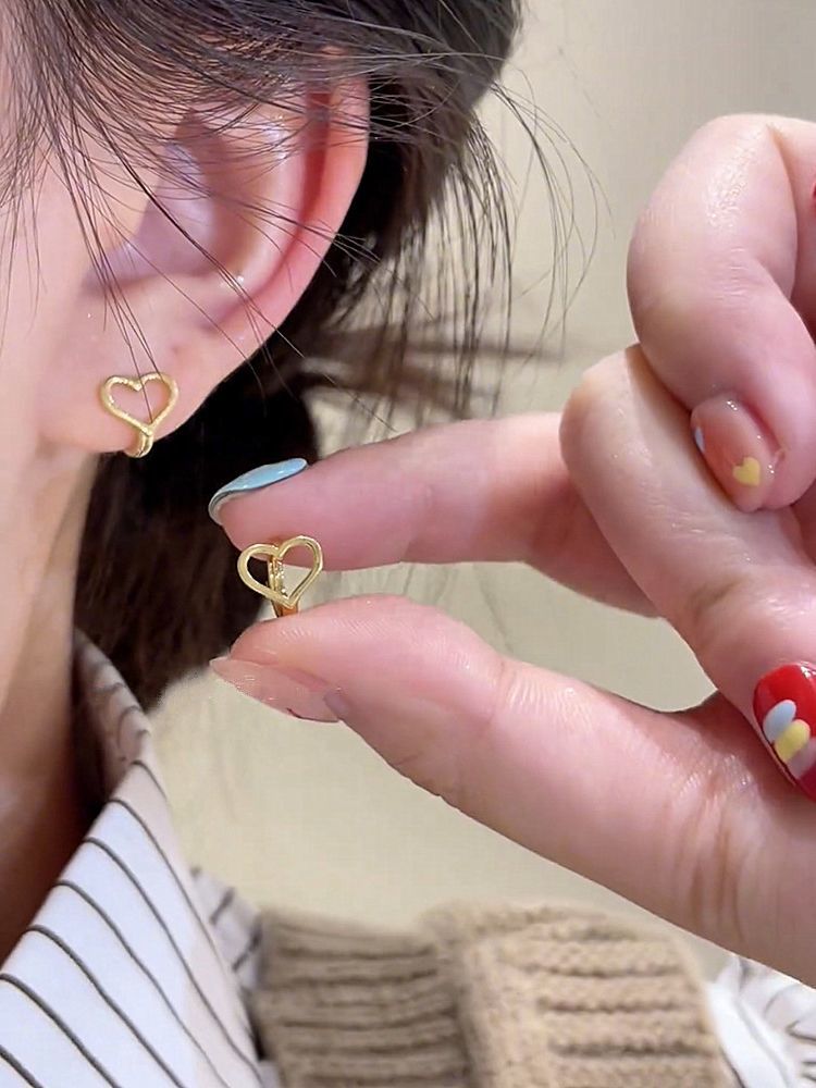 人気のピアス 純銀スリープフリーハート耳輪イヤリング女性insマイナーデザイン冷たい風耳掛けイヤリング2025新型 イヤリング