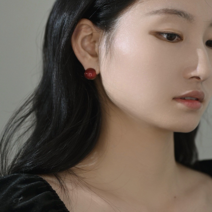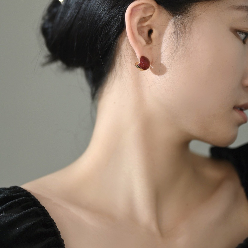 韓国ファッション 冬のピアス レッド ピアス レディース ピアス エレガントでシンプル アクセサリー 軽量贅沢 イヤリング ピアス