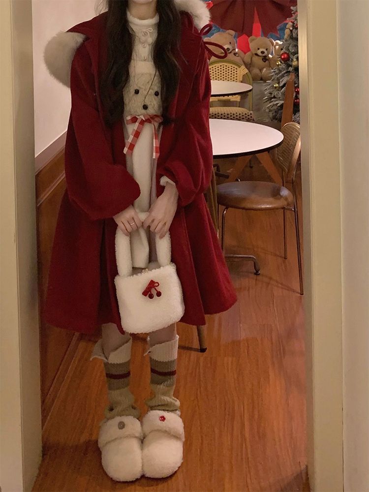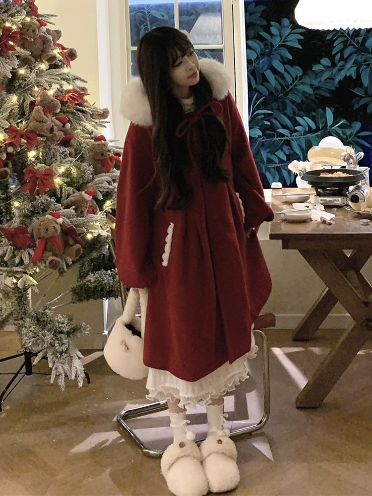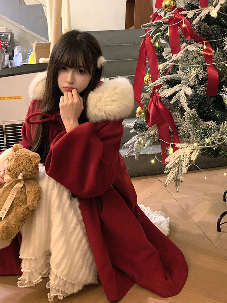 冬アウター 新年 クリスマスのガウン 大毛の襟 キャップ ウールのコート 冬 新しい 高級 あつさを増す ラシャコート かわいい ファッション 快適 コート着