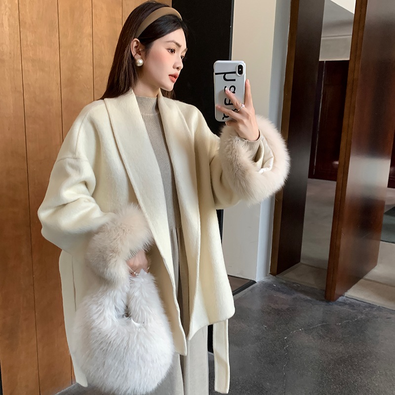 フォックスファー両面カシミヤコートレディースショートウエスト痩身冬ウールコート多用途 その他 アウター