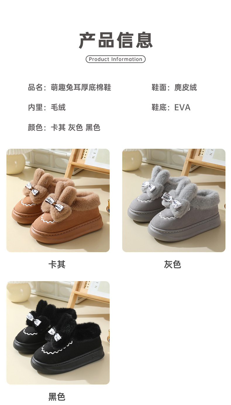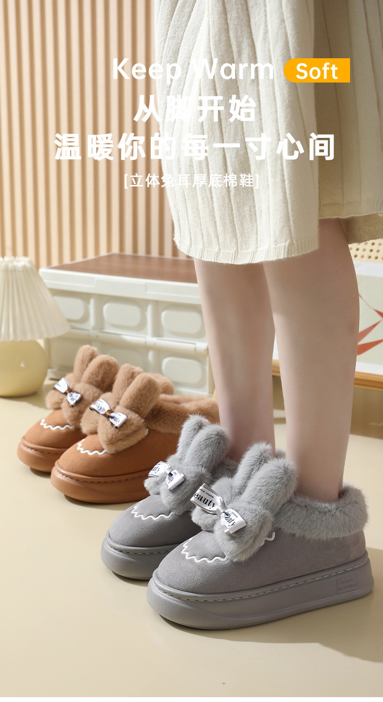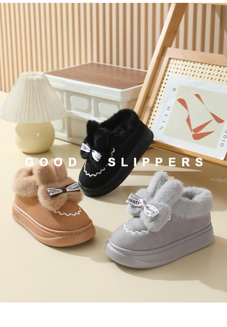 女性用の新しい冬用スノーブーツベルベットの暖かいヒールのコットンシューズ冬用の屋内用厚底ぬいぐるみウサギコットンブーツ その他 ブーツ ブーティー