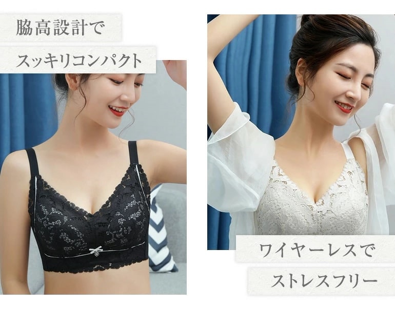 小さく見せるコンパクトブラ はみ肉スッキリ ノンワイヤー 脇高調整ブラ レース 胸を小さくする 着やせ 楽ブラ レディース ブラジャー 大きいサイズ さらしブラ 補正下着 脇肉誘導 脇高 通気性