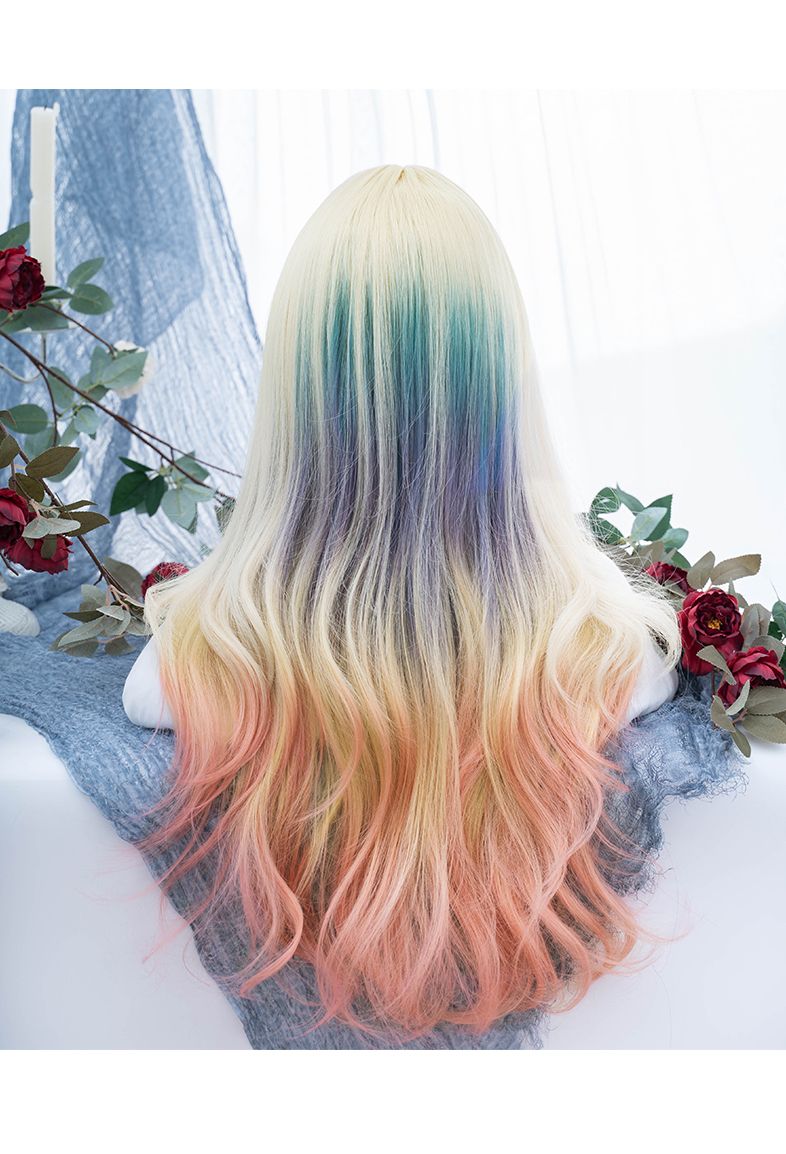 ウィッグ 女性ロングヘアーロリータカラーグラデーション巻き毛JKヘッドギア フルウィッグ