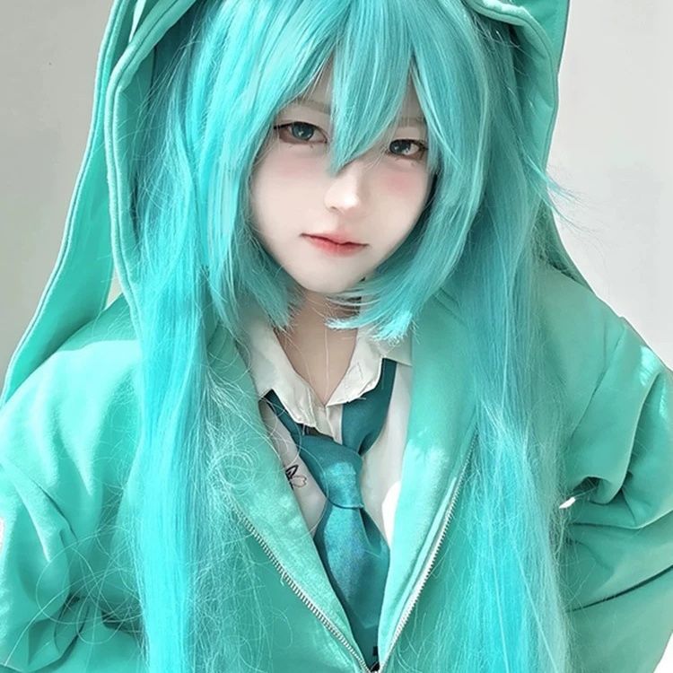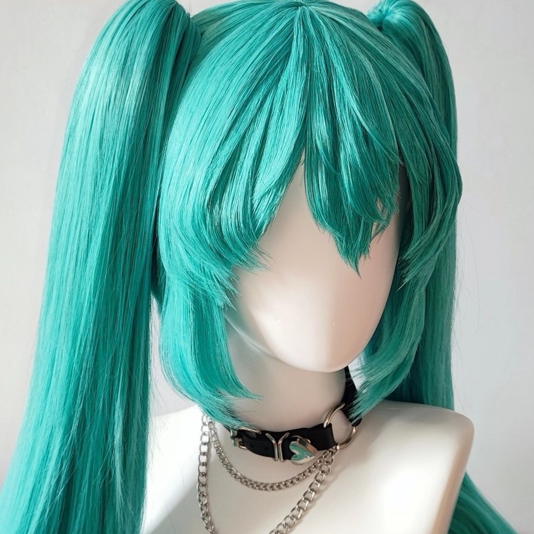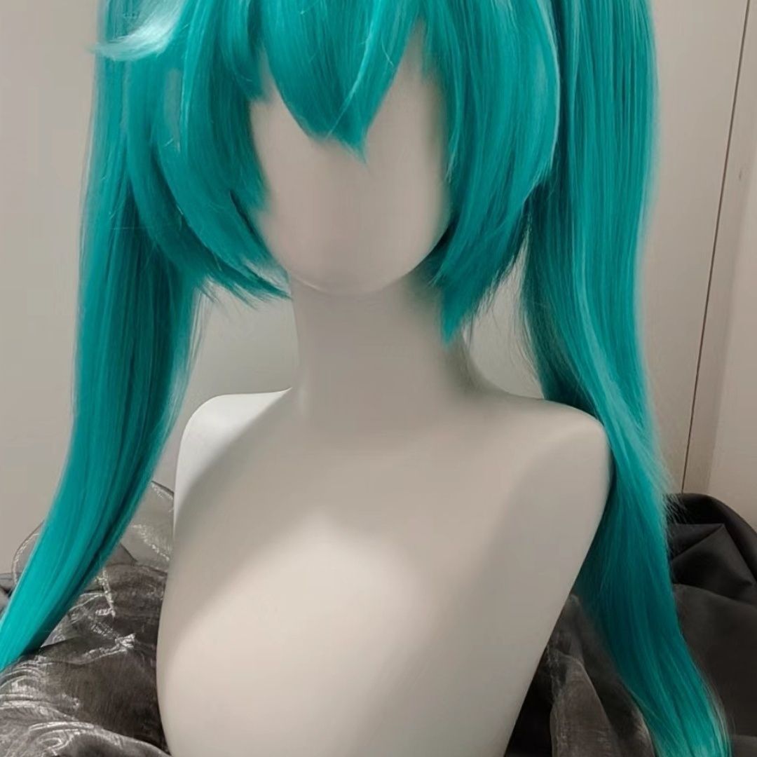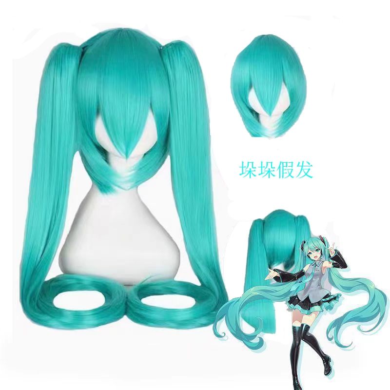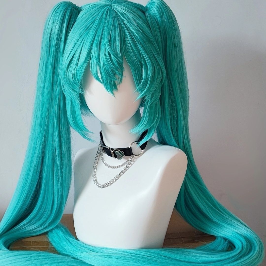 ウィッグ スーパーロングレイクグリーンダブルポニーテール初音ミクウィッグ かつら