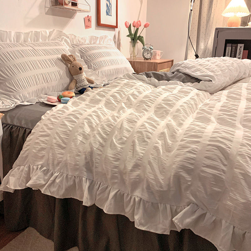 寝具 4ピース布団カバーベッドスカートプリーツ布団カバー寝具 布団カバー