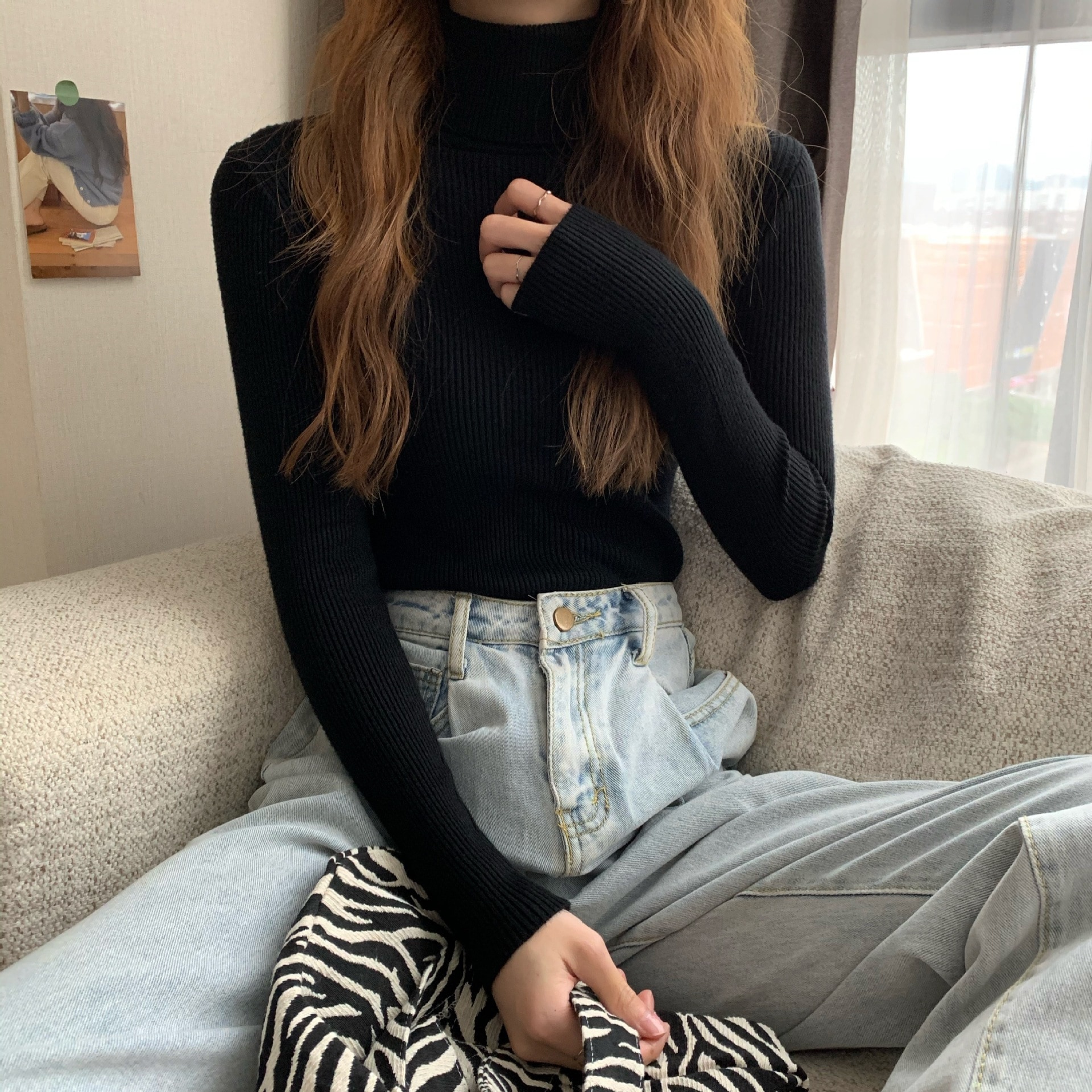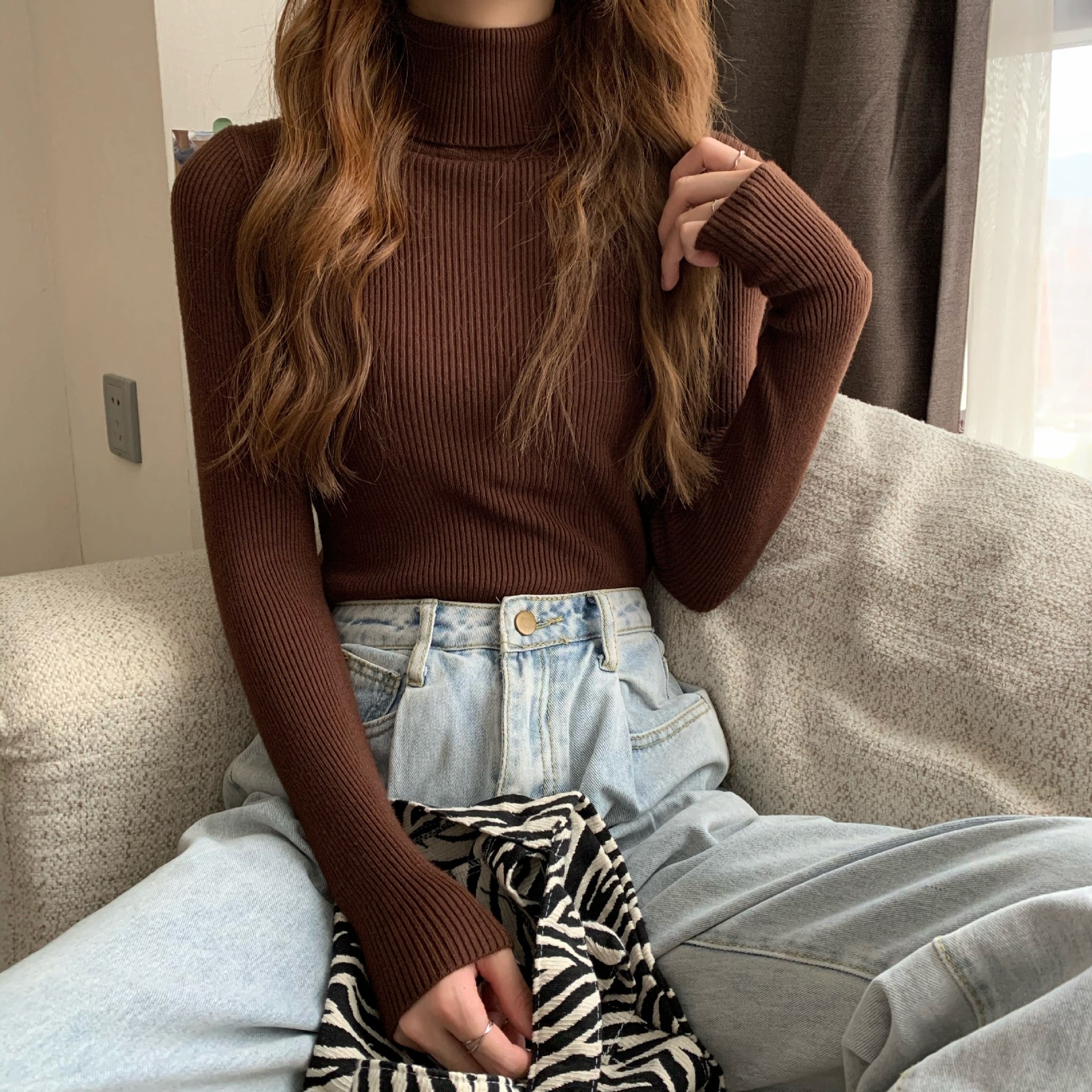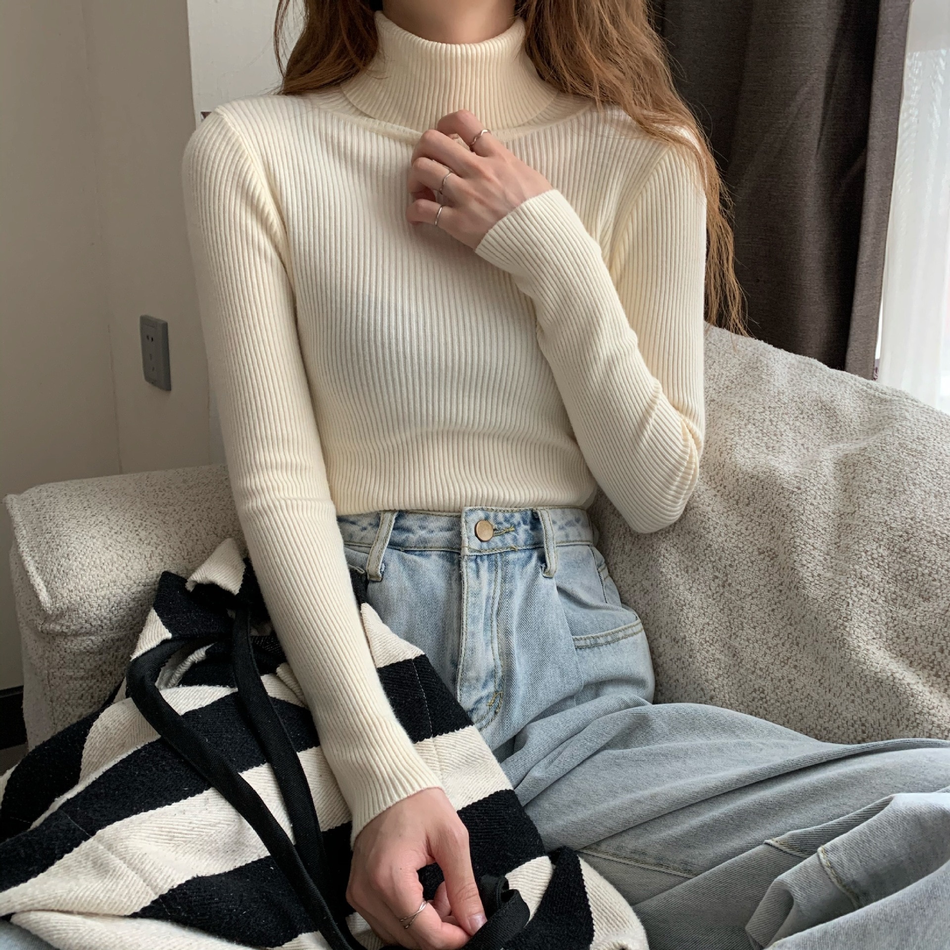 新作 ニットカーディガン ニット セーター ハイネック アンダーウェア インナー 長袖セーター レディース 弾力 百掛け 韓国ファッション 無地