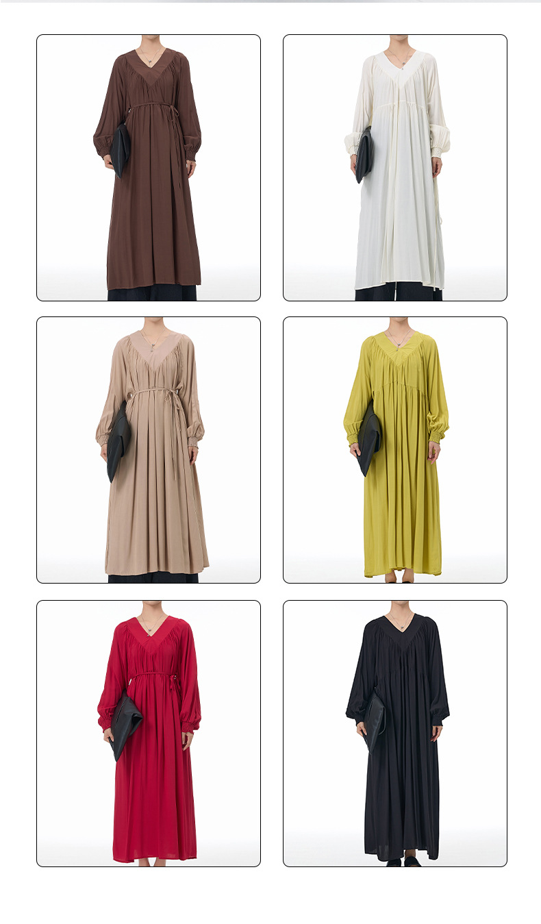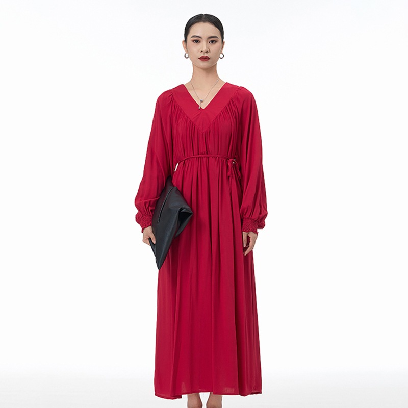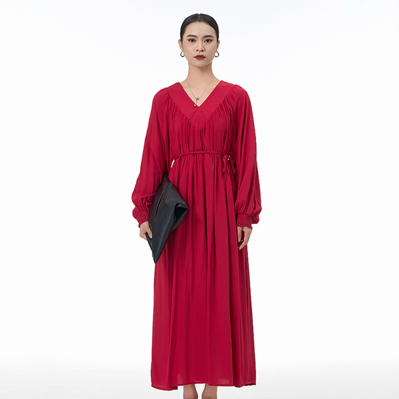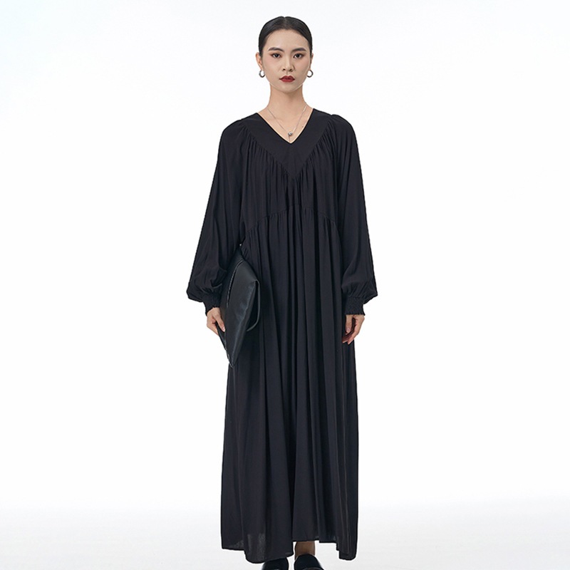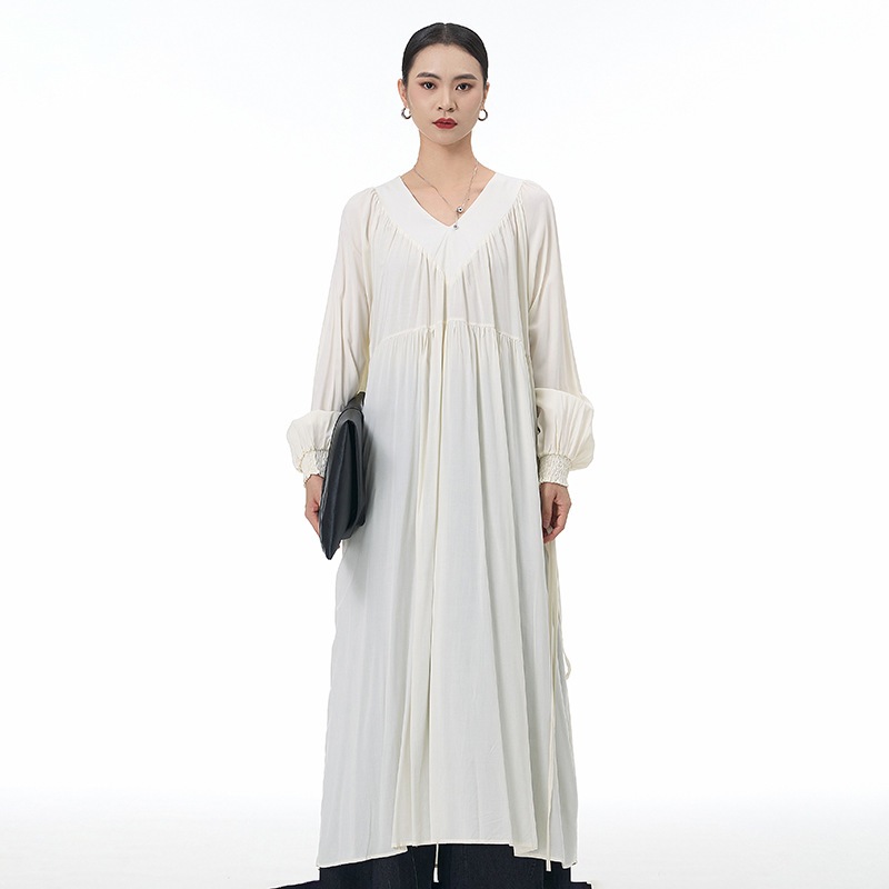 新作 韓国 デザイン 長袖ワンピース ワンピース 高級感 パーティードレス Vネック プリーツ ランタン袖 ワンピース 気質 ラウンドネック 着やせ おしゃれ ワンピース レディース