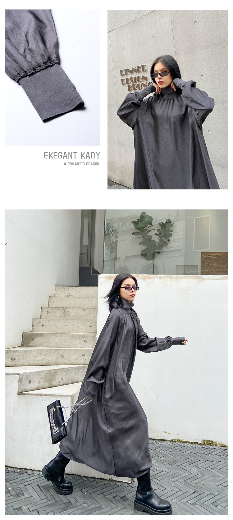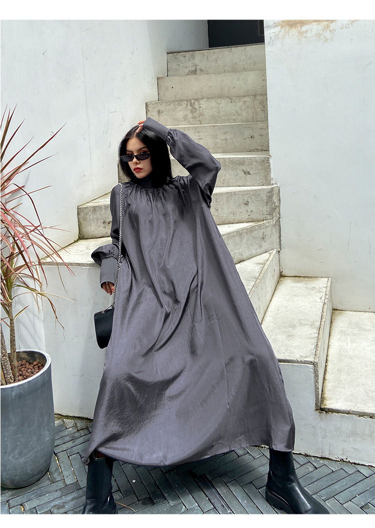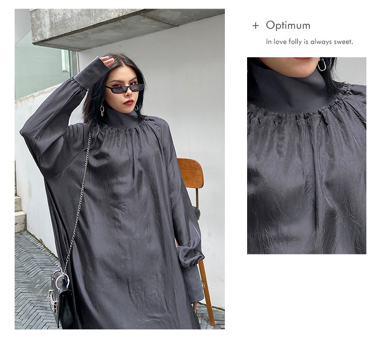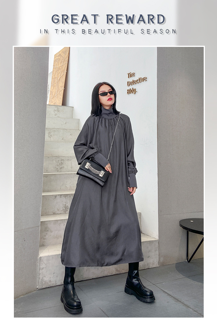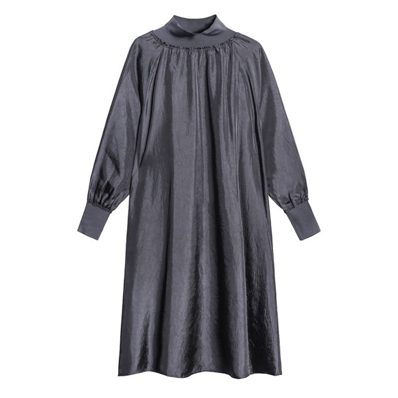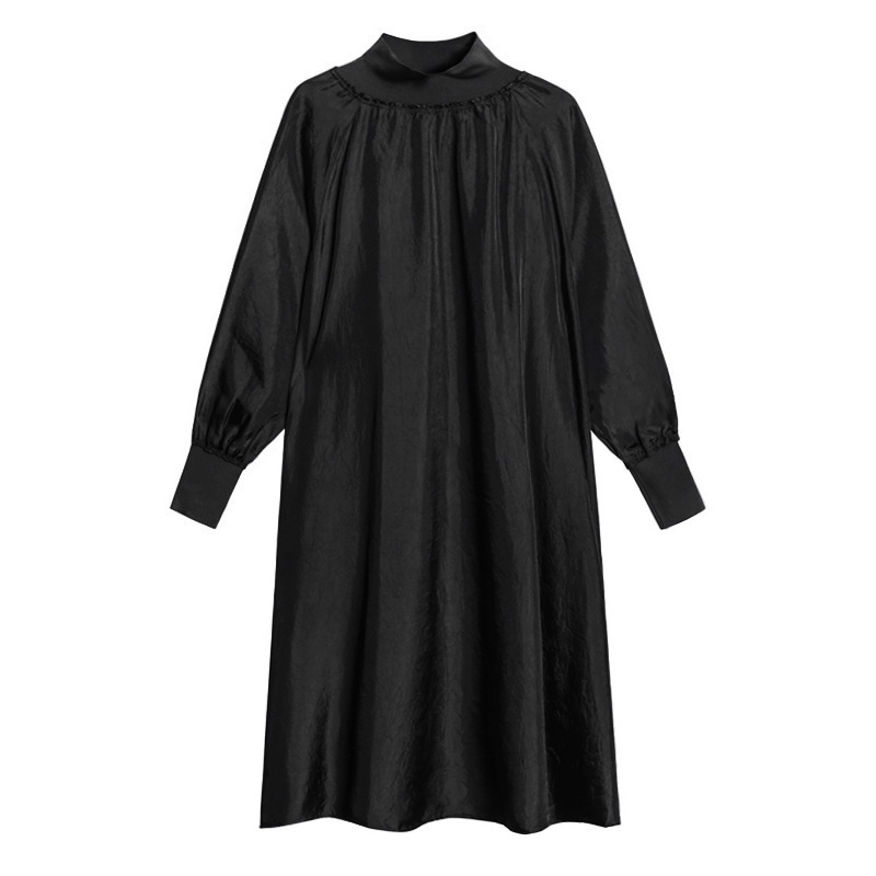 新作 フレンチヴィンテージ ワンピース 長袖ワンピース 高級感 ワンピース ハイネック ゆったりランタンスリーブ 大きいサイズ 着やせ おしゃれ ワンピース レディース パーティードレ