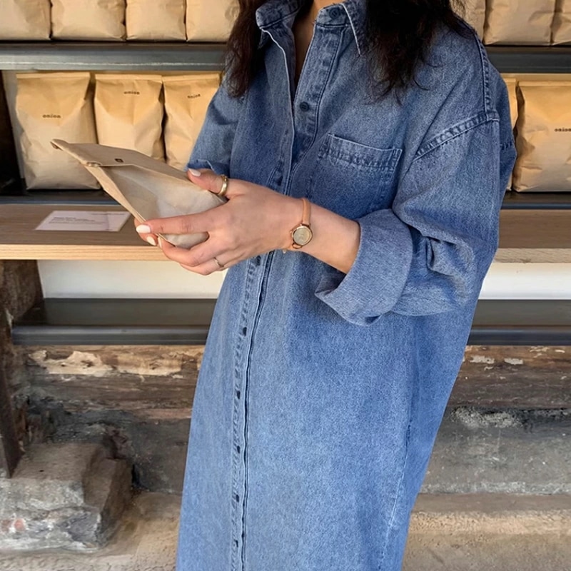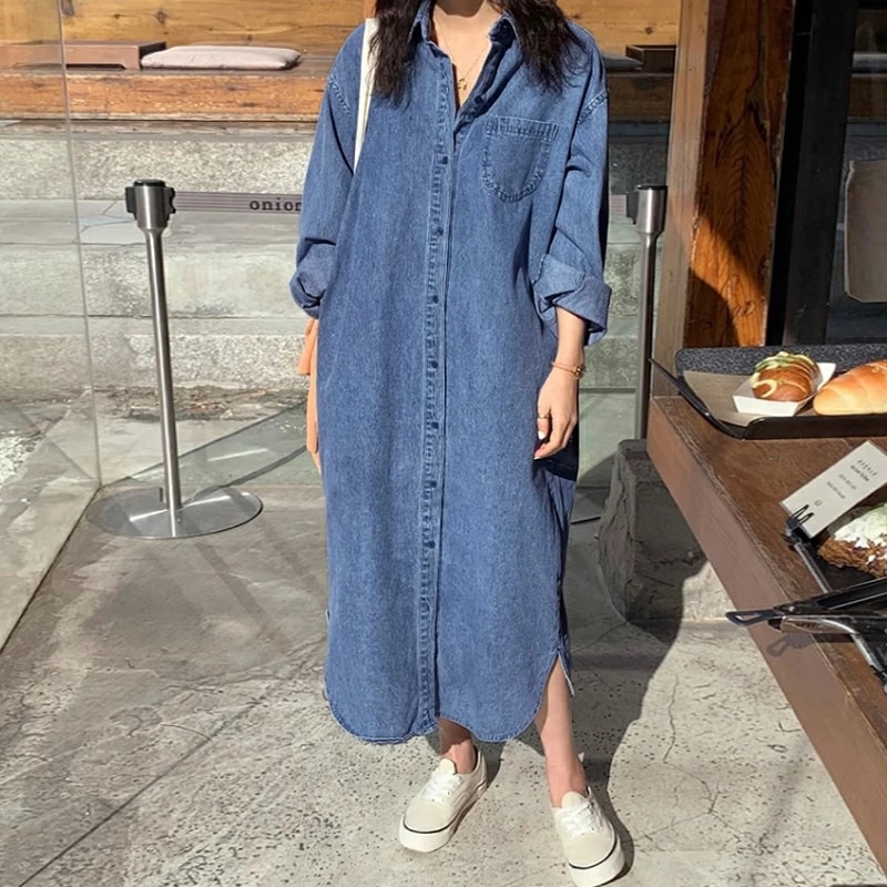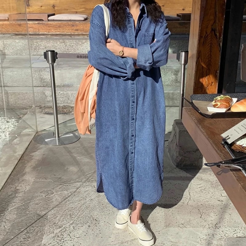 デニムワンピース シャツワンピース ロングワンピース デニム ワンピース 長袖 ロング丈 レディース デニムシャツワンピース シャツワンピ ゆったり