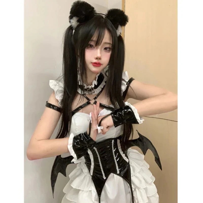 コスプレ ハロウィン 新型 韓国 スカートのデザイン感ウエストカバーファッション洋風 メイド服 悪魔 清楚ロリータワンピース トロールプレイング メイド服 メガ割
