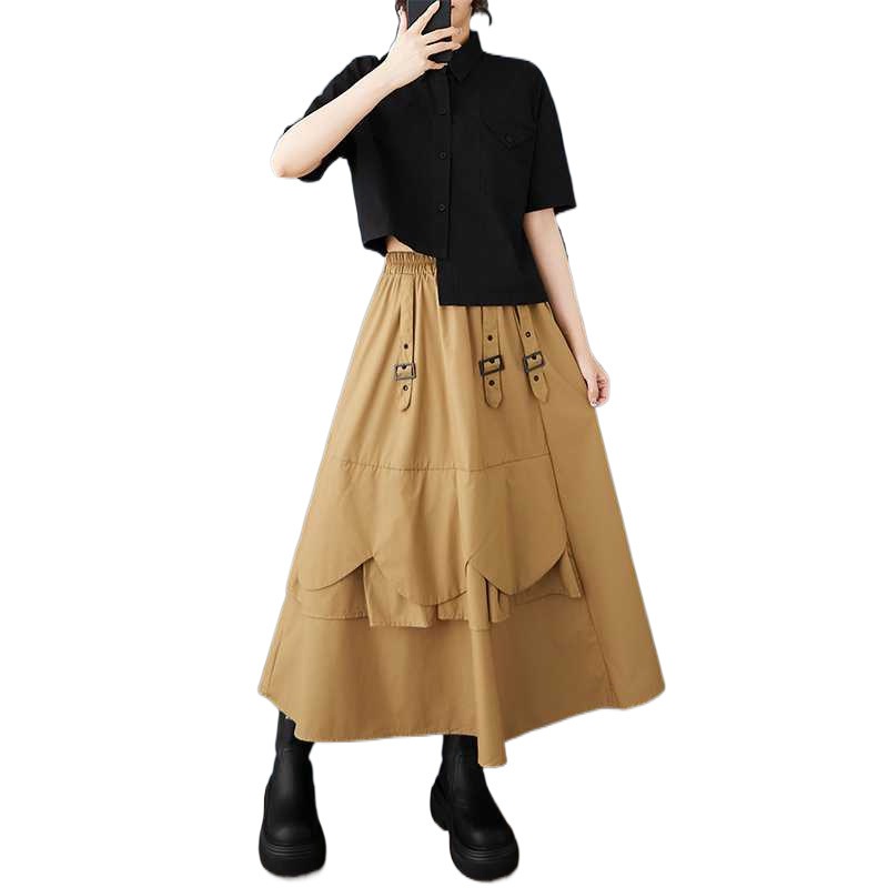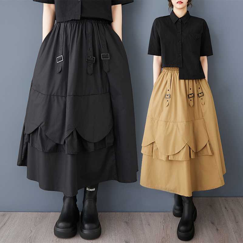 2025春 ロングスカート 大きいサイズ ドッキング 体型カバー レディース スカート メガ割 ロングスカート