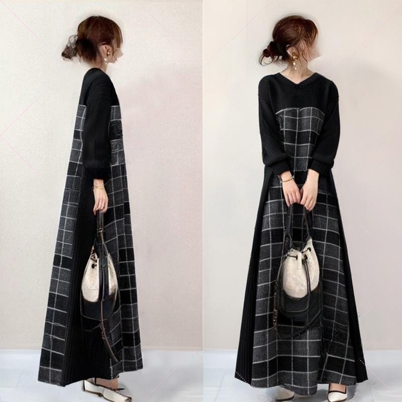 チェスターワンピース レディース 韓国風 Vネック ロングワンピース ワンピースオシャレ 大人 ワンピース 長袖 上品 通勤 着痩せ 長袖ロング マキシ丈ワンピ
