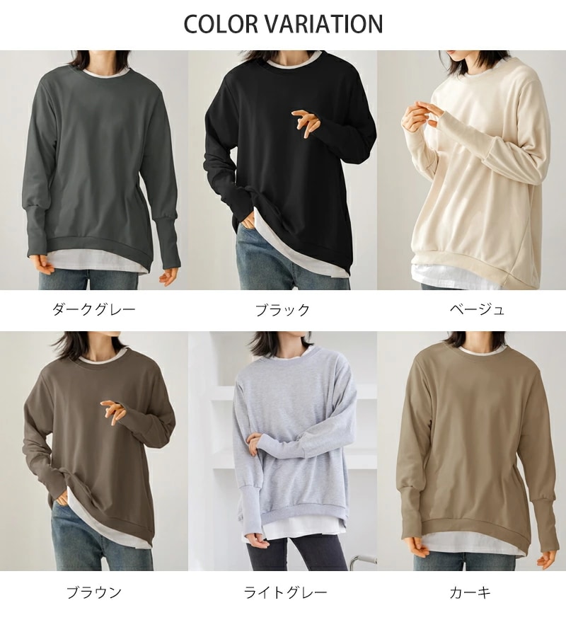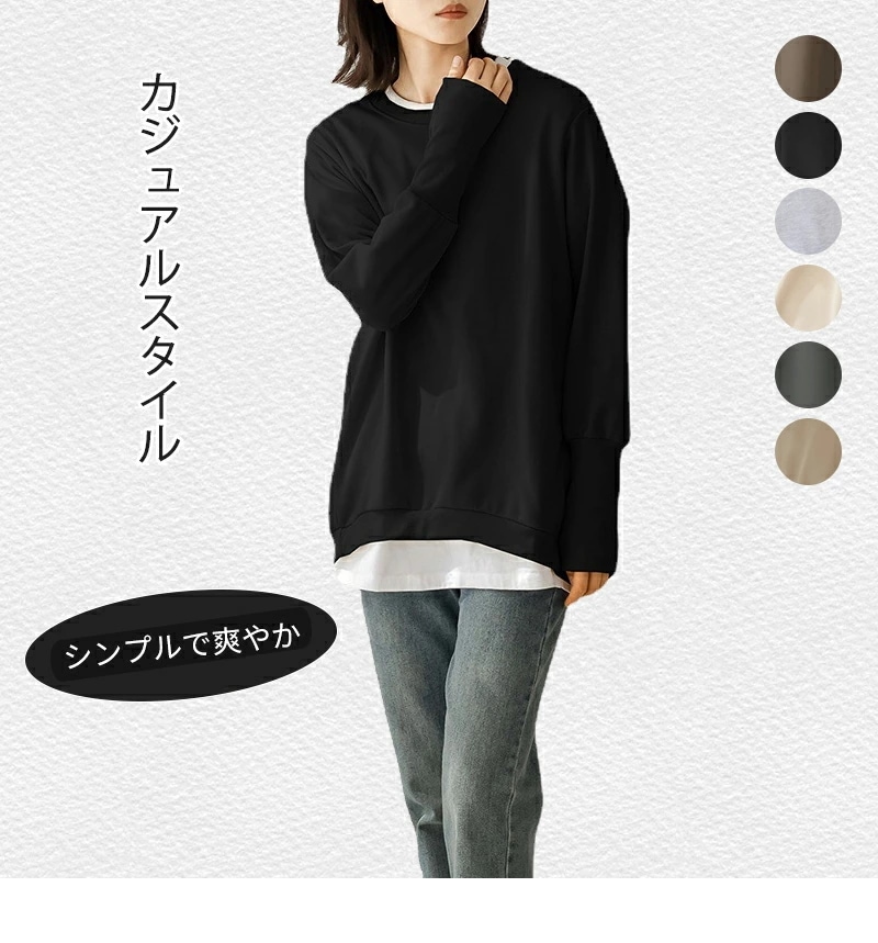 大人の抜け感 トレーナー レディース スウェット リブ長 大きいサイズ シンプル 長袖 ルームウェア 秋冬 オシャレ 楽ちん ラフ カジュアル
