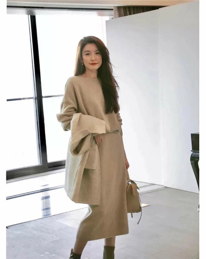 ニットセットアップ レディース セーター きれいめ ニットセーター 40代 秋冬 ニットスカート スカート 長袖 ニット セーター スカート セットアップ 無地 ロング丈 オシャレ 上品 韓国風 カジ