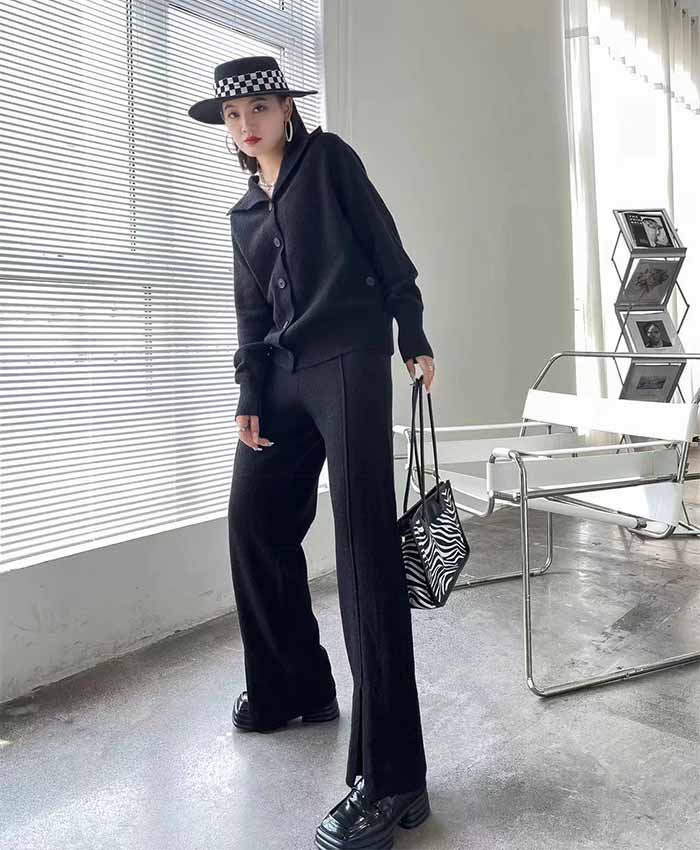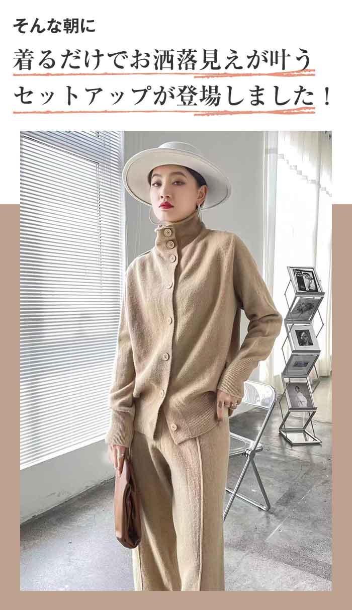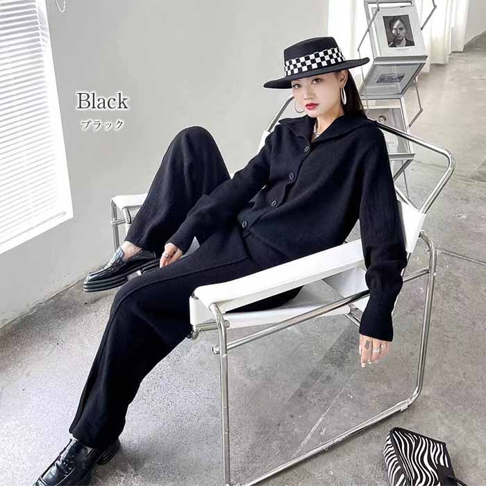 ニットセットアップ パンツ ニットパンツ レディース セットアップ ニット 秋冬 長袖 冬 カーディガン タートルネック セーター ワイドパンツ カジュアル ワンマイルウェア 2点セット 上下セット