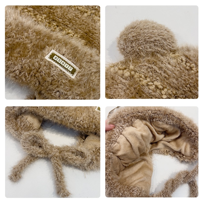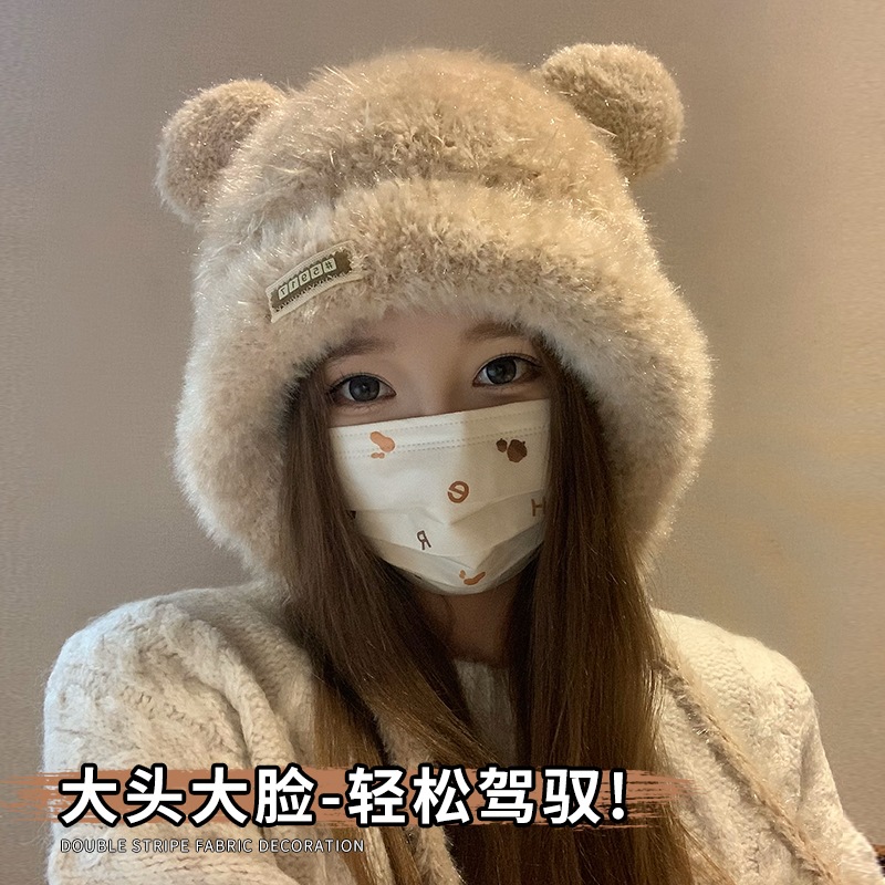2024新作 クマ帽子 レディース 秋冬 暖か 厚手 防寒 大きい頭囲 顔が見える 小さめ ニットウール帽子 帽子