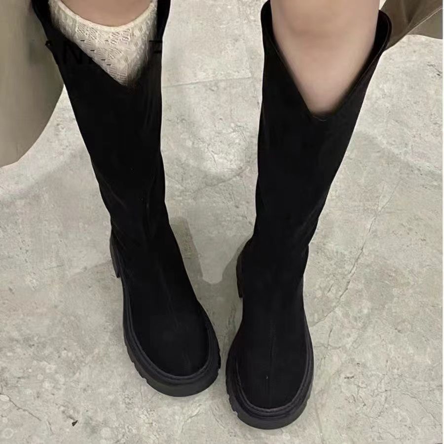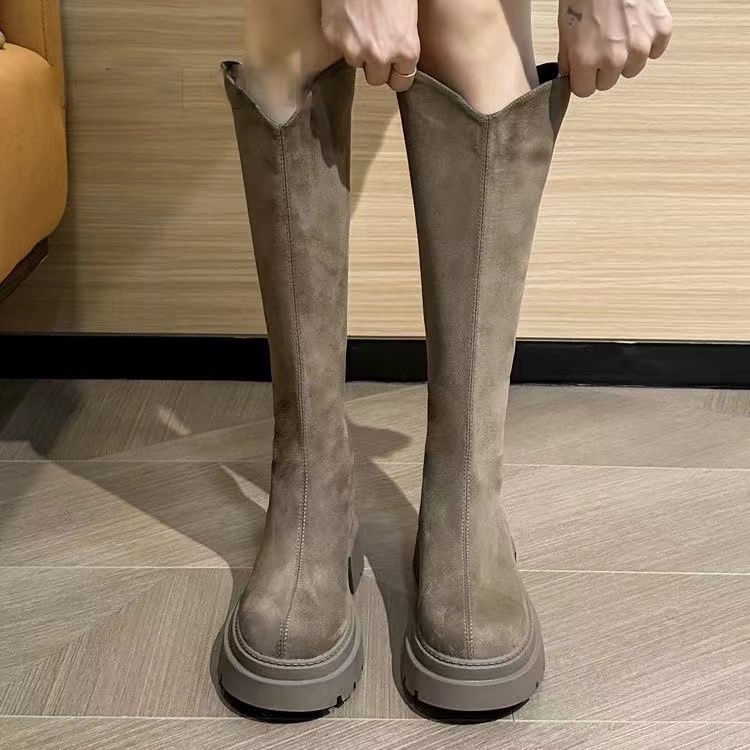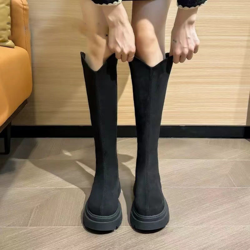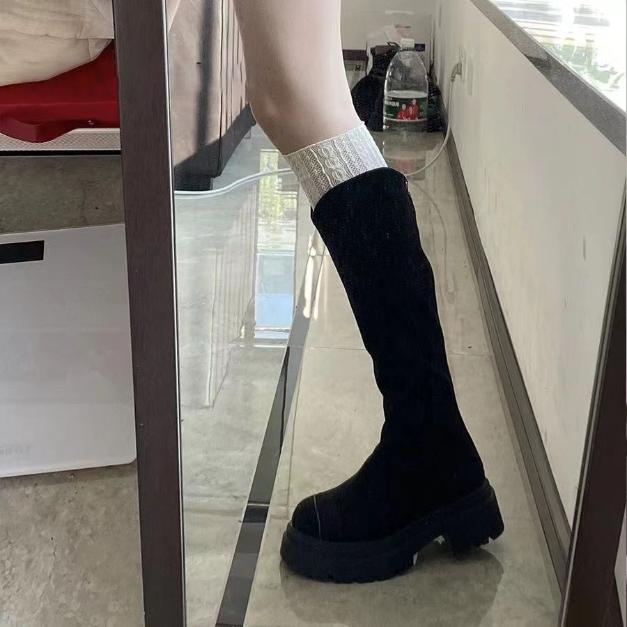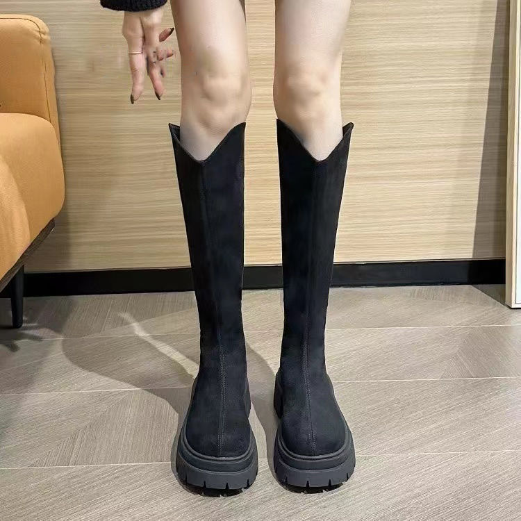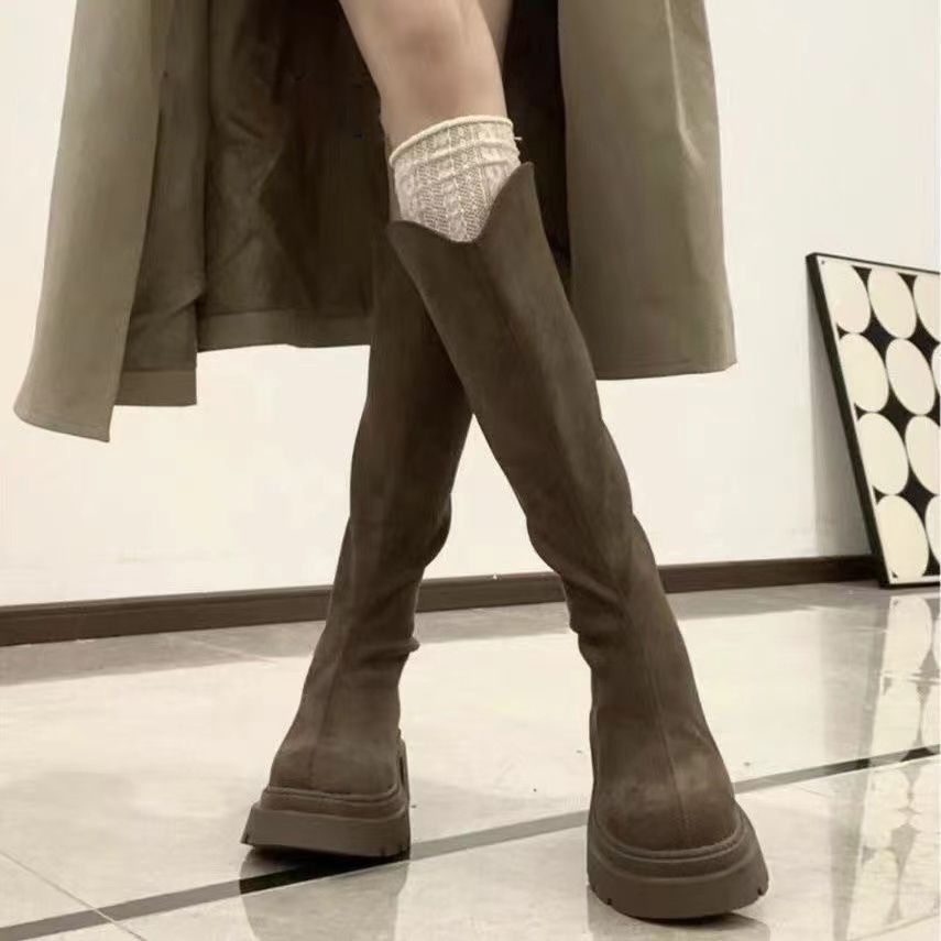 スリムスエード弾性ハイブーツ厚底ブーツ大サーキットトール厚底ナイトブーツ女性用2024新しいスタイル ロングブーツ