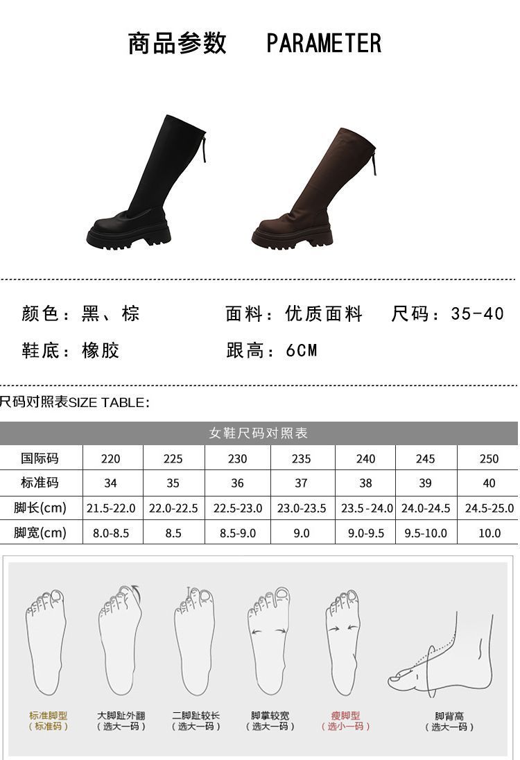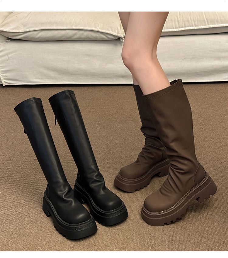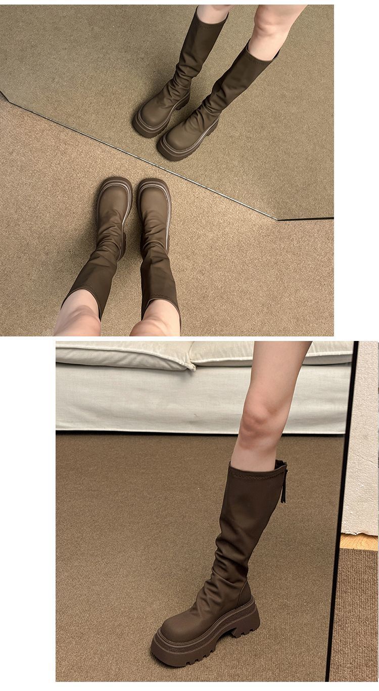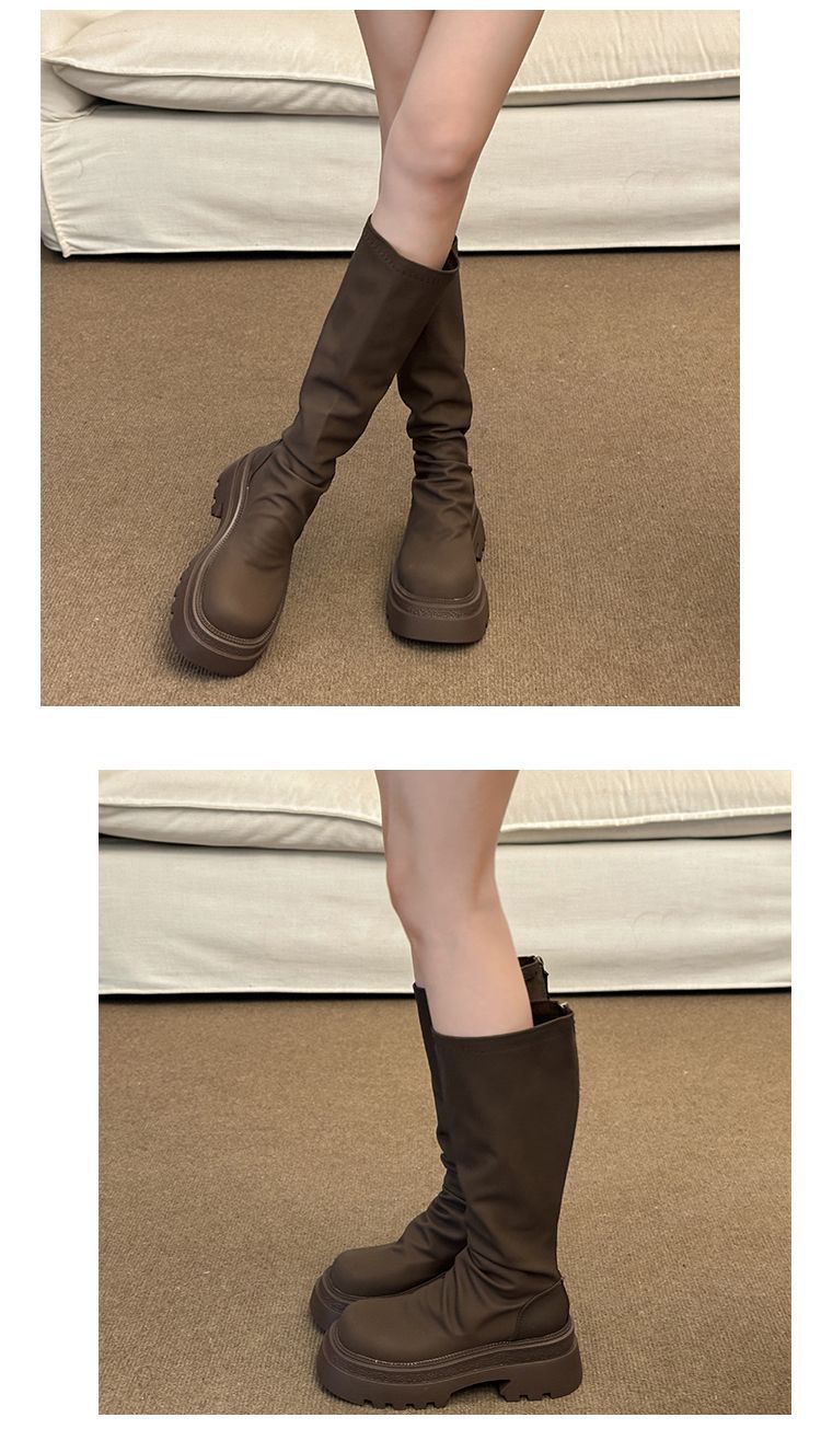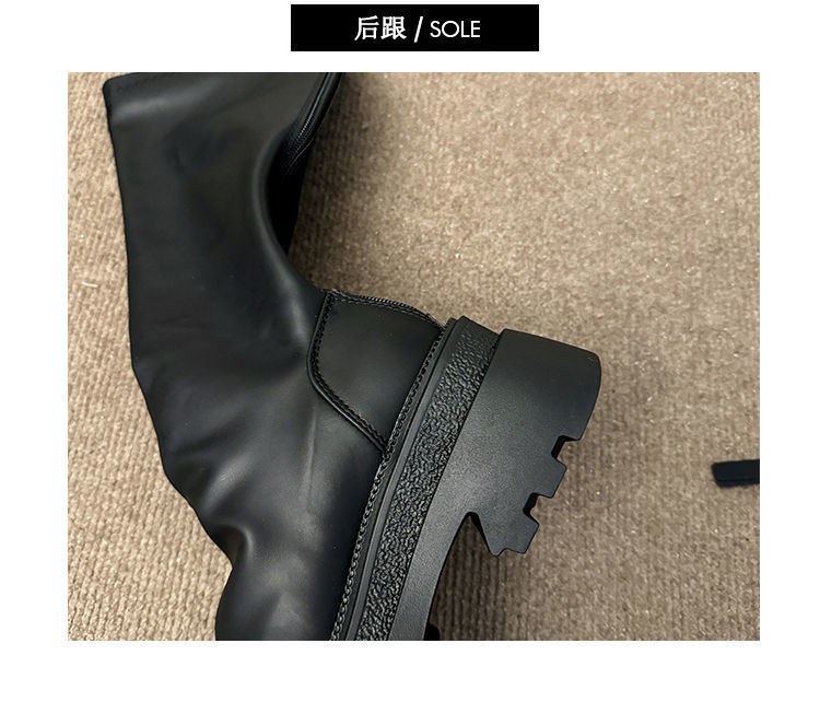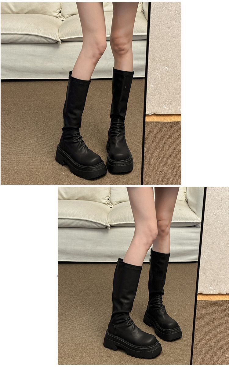 小柄な方向けストレッチ薄手ブーツ厚底ハイブーツ脚太いmmノーハイニーブーツ女性用2024春秋新作 ロングブーツ