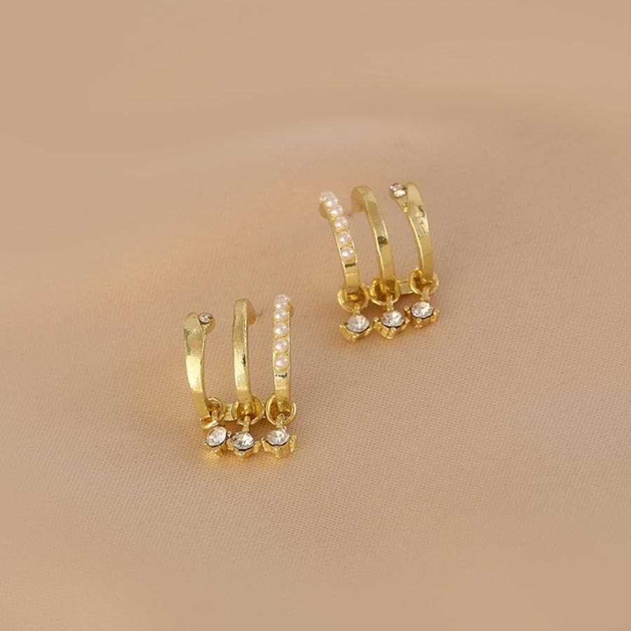 冬のピアス夏のピアス春のピアスイヤリングピアスフープピアス春の耳元をおしゃれに 3連ピアス レディースフープピアス ピアス