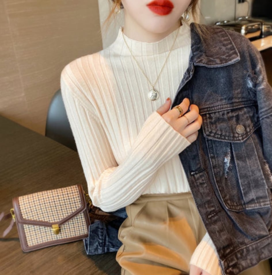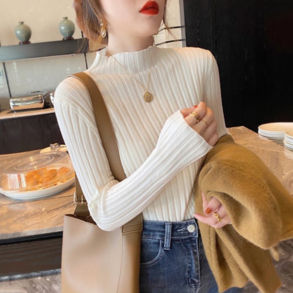 ニットハーフ 半タートルネックセーター ネックベースの長袖ブラウス春秋冬 ニット
