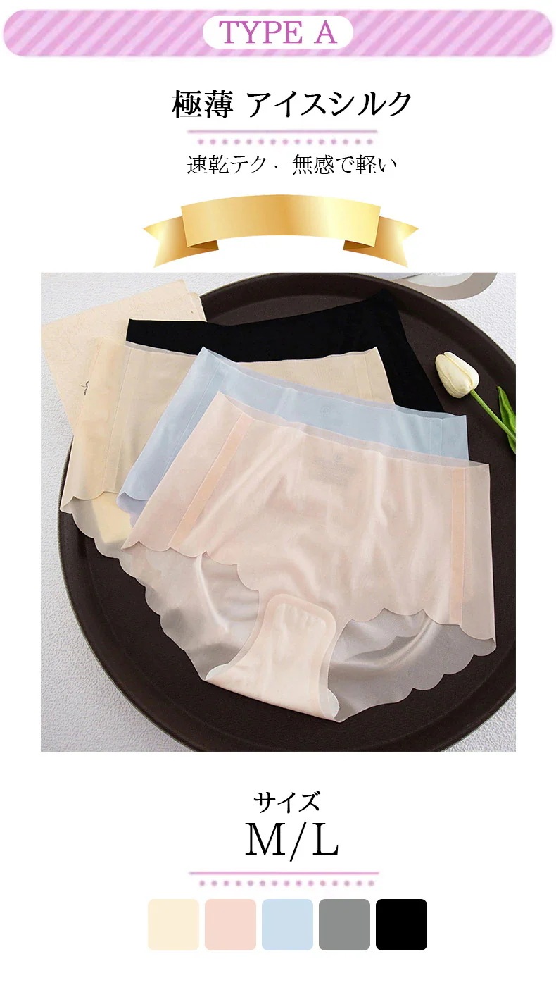 響かない シームレスシ-ムレスシヨ-ツ アイスシルク4枚セット 涼しい 速乾 ハイウエスト 腹部の引き締め ショーツ 美尻 接触冷感 通気性 抗菌 軽薄