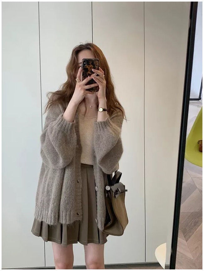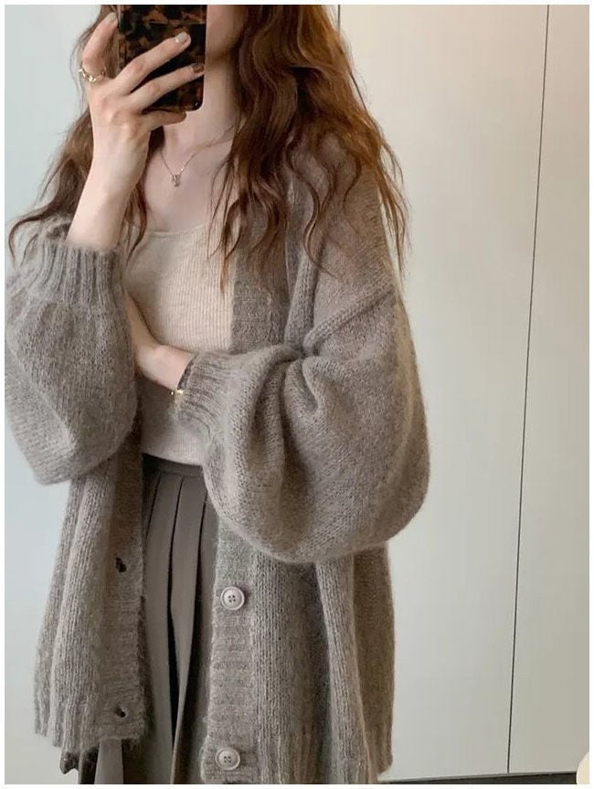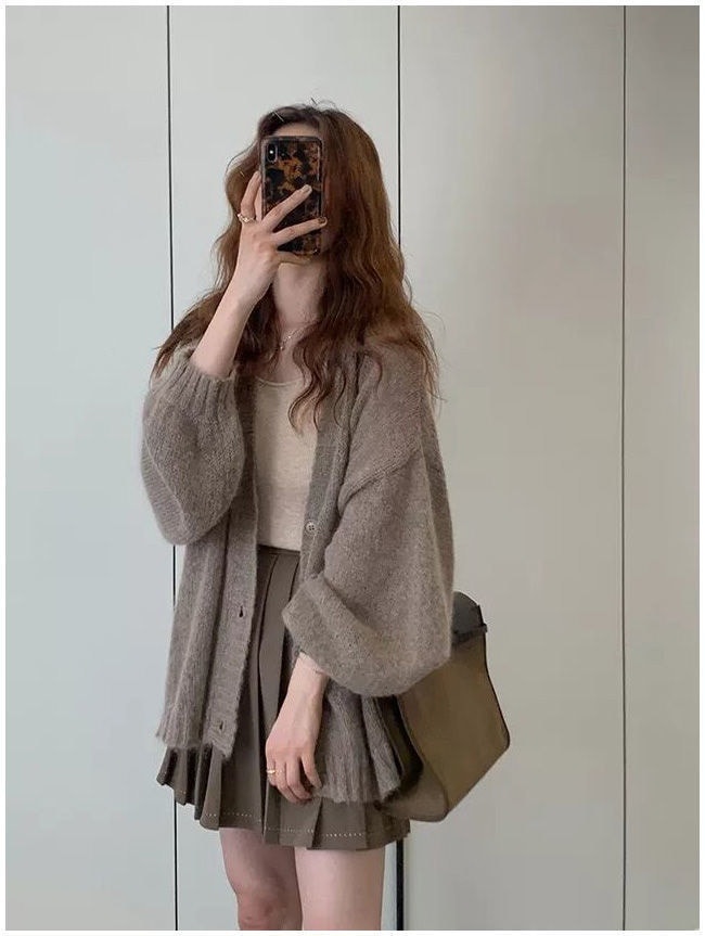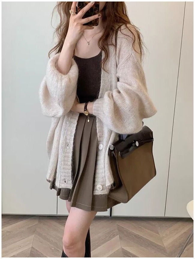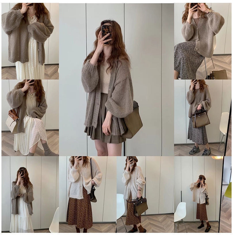 韓国ファッション UVカットカーディガン ベーシックニット紫外線対策 ニットカーディガン ゆったりスウェット アウター長袖 無地 Vネックトップス ニットアウターメガ割