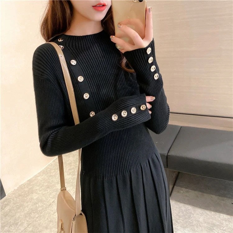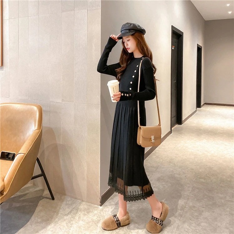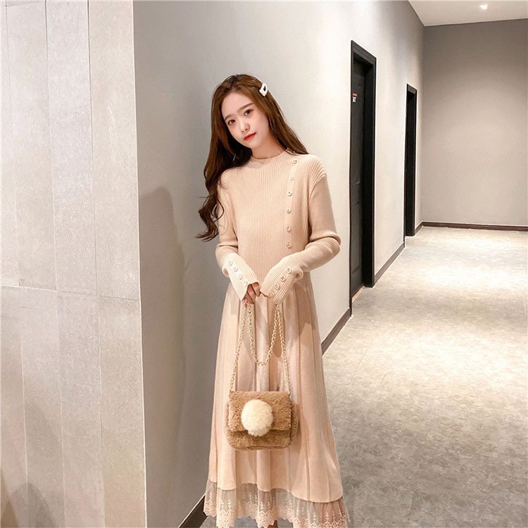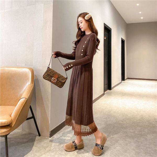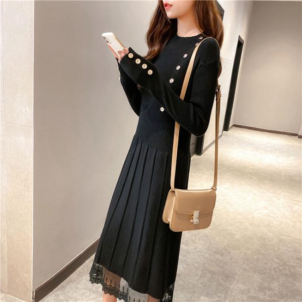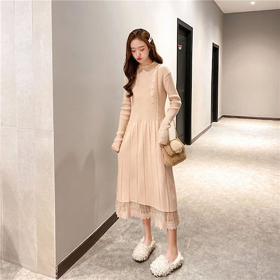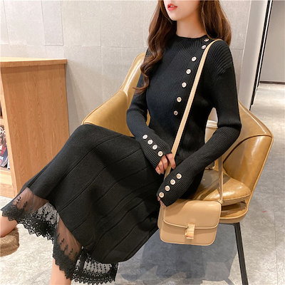ニットワンピ ニットワンピース レディース 黒 秋冬 体型カバー 長袖 マキシ丈 ニット ロング丈 ゆったり 無地 韓国風 ゆったり 可愛い 30代 40代 50代