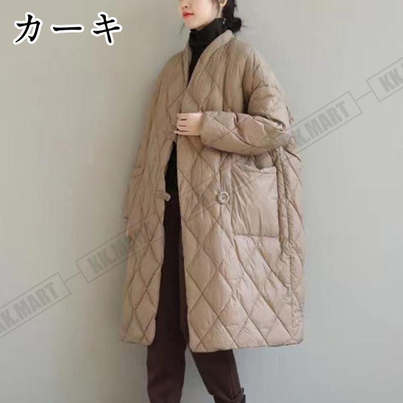 キルティングコート ロングコート レディース アウター 防寒 ダウン 中綿 秋 冬アウター 長袖 冬服 立てネック キルティングジャケット 大きめ ゆったり
