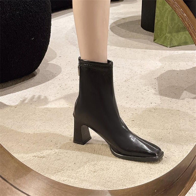 お気に入り商品 英国スタイル シンプル レトロ 太ヒール ブーツ ショートブーツ ファッション ファスナー式 ショートブーツ ヒール 毎日履きたい