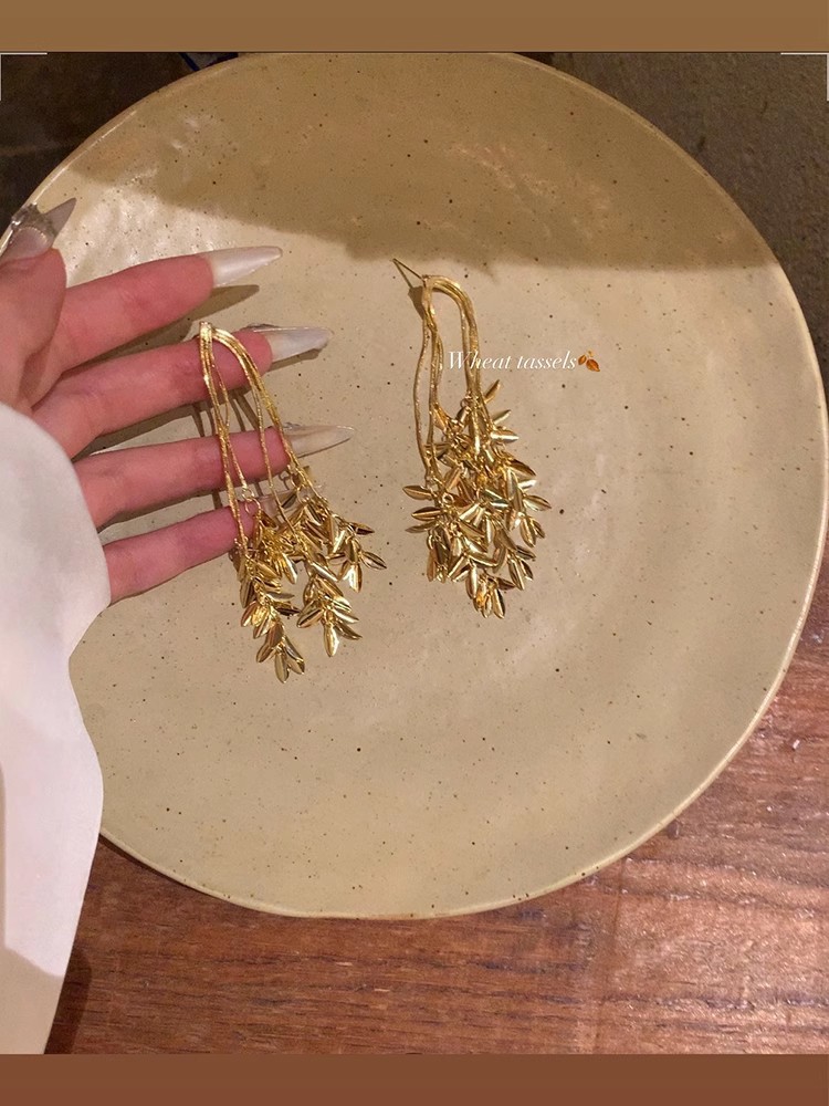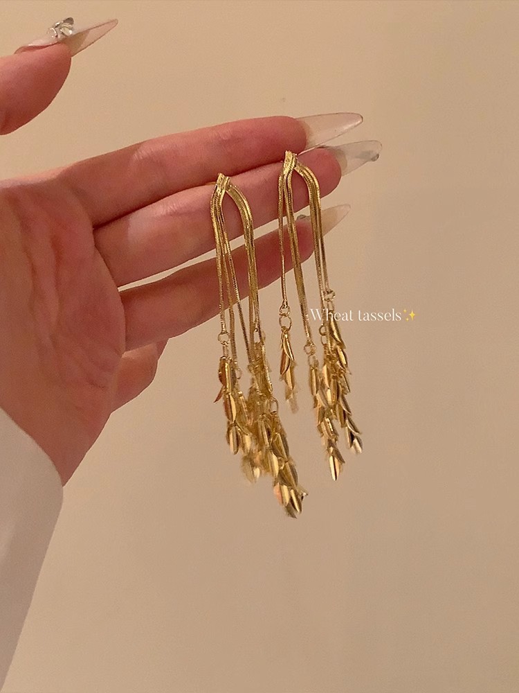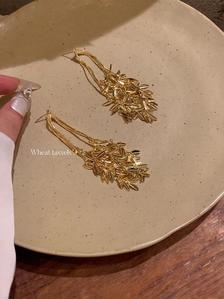 ピアス ロングタッセル小麦ピアス気質イヤリングイヤリング ピアス