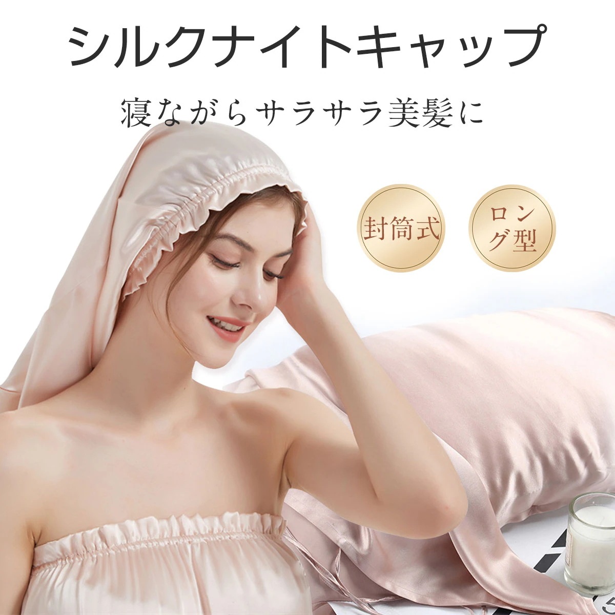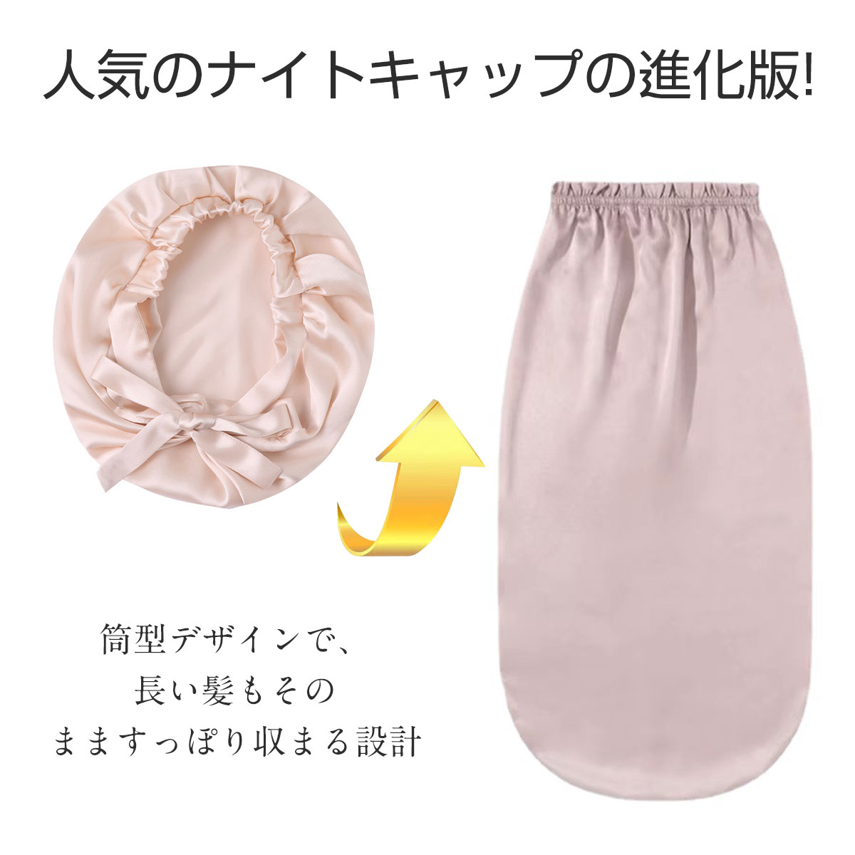 [SNSで大話題 プレゼント ボックス包装 ]シルク ナイトキャップ ロング ナイトキャップ シルク キャップ シルク100% 25匁 ロングヘア用 筒型デザイン 髪質改善 就寝用