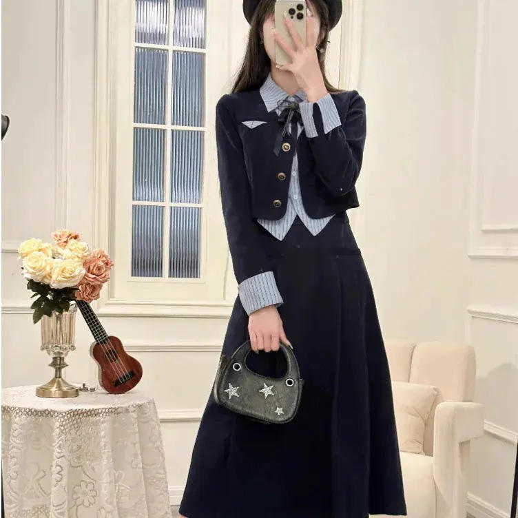 アッシュピンクのロングスカートアメリカンレトロ感学院風ウエスト丸め痩せJK制服 レディース 涼しく楽ちんセット2024 ファッションアップ 新作 韓国ファッション セットアップ