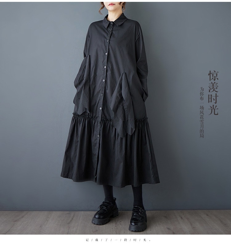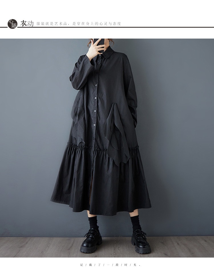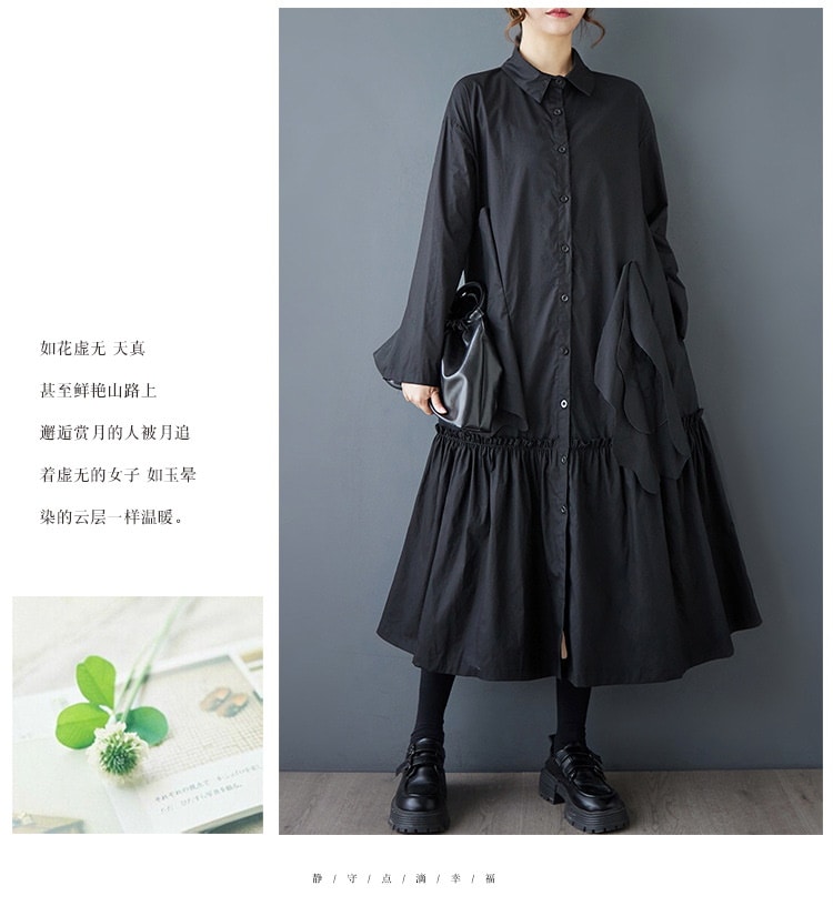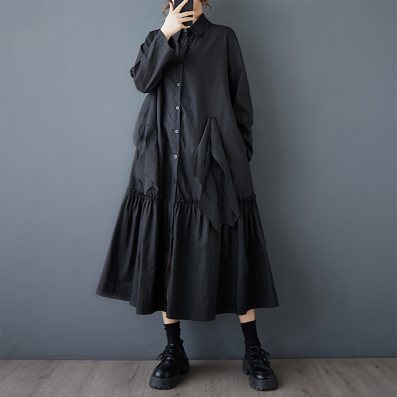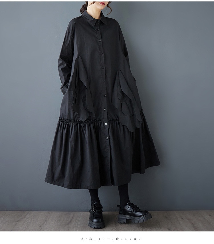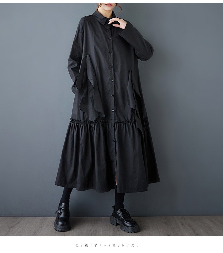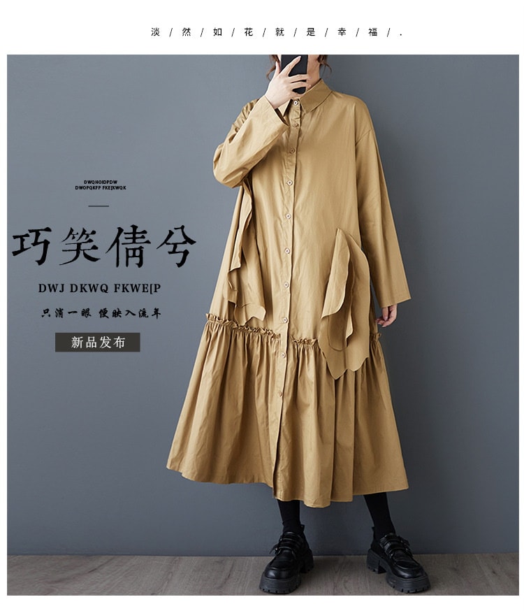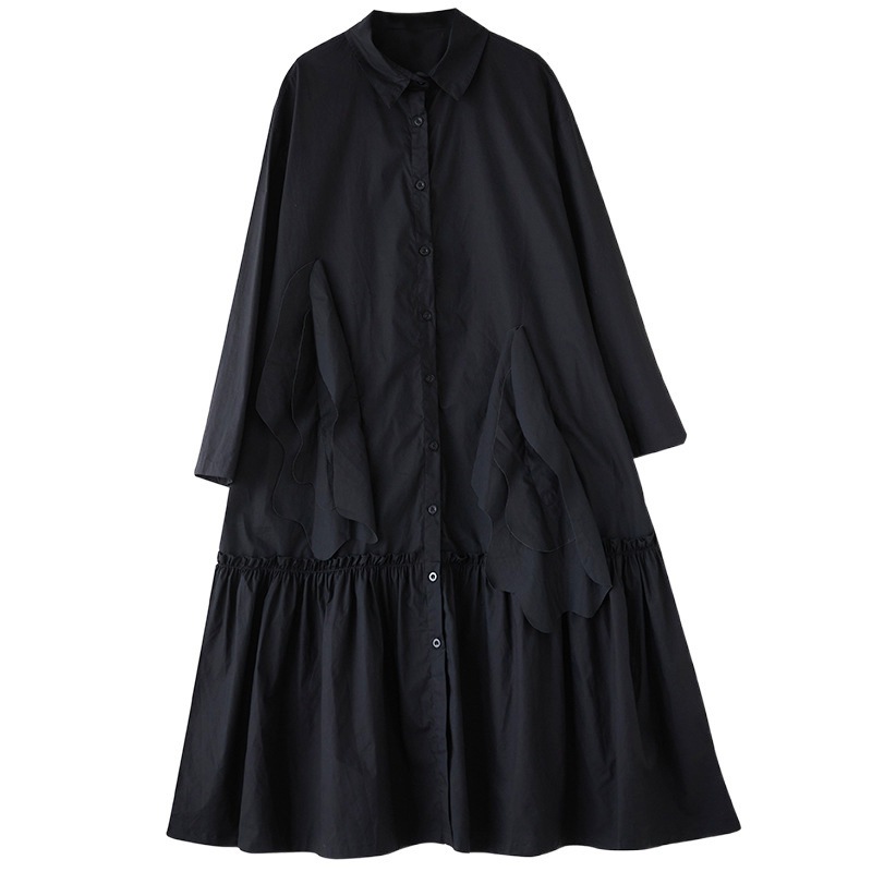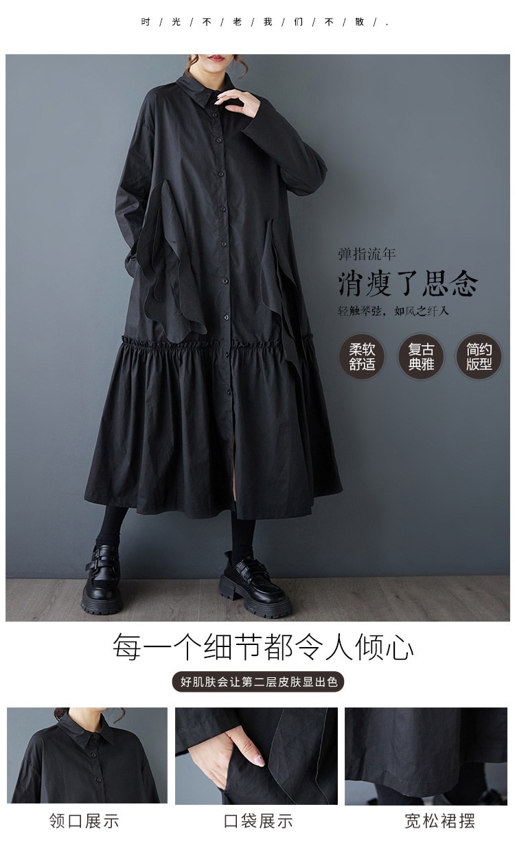 新作春シャツワンピース 長袖ワンピース ロングワンピース カジュアル 通勤 文芸 ゆとりがある 通勤 長袖 ブラック アンズ色 スタンドカラー シャツワンピースJGX02