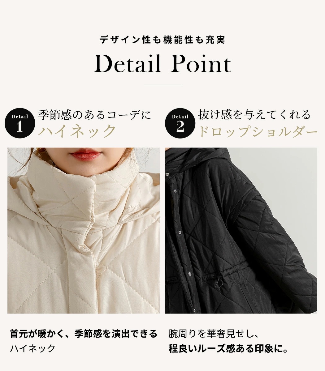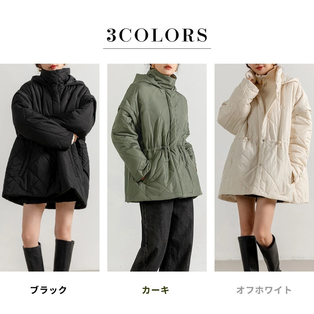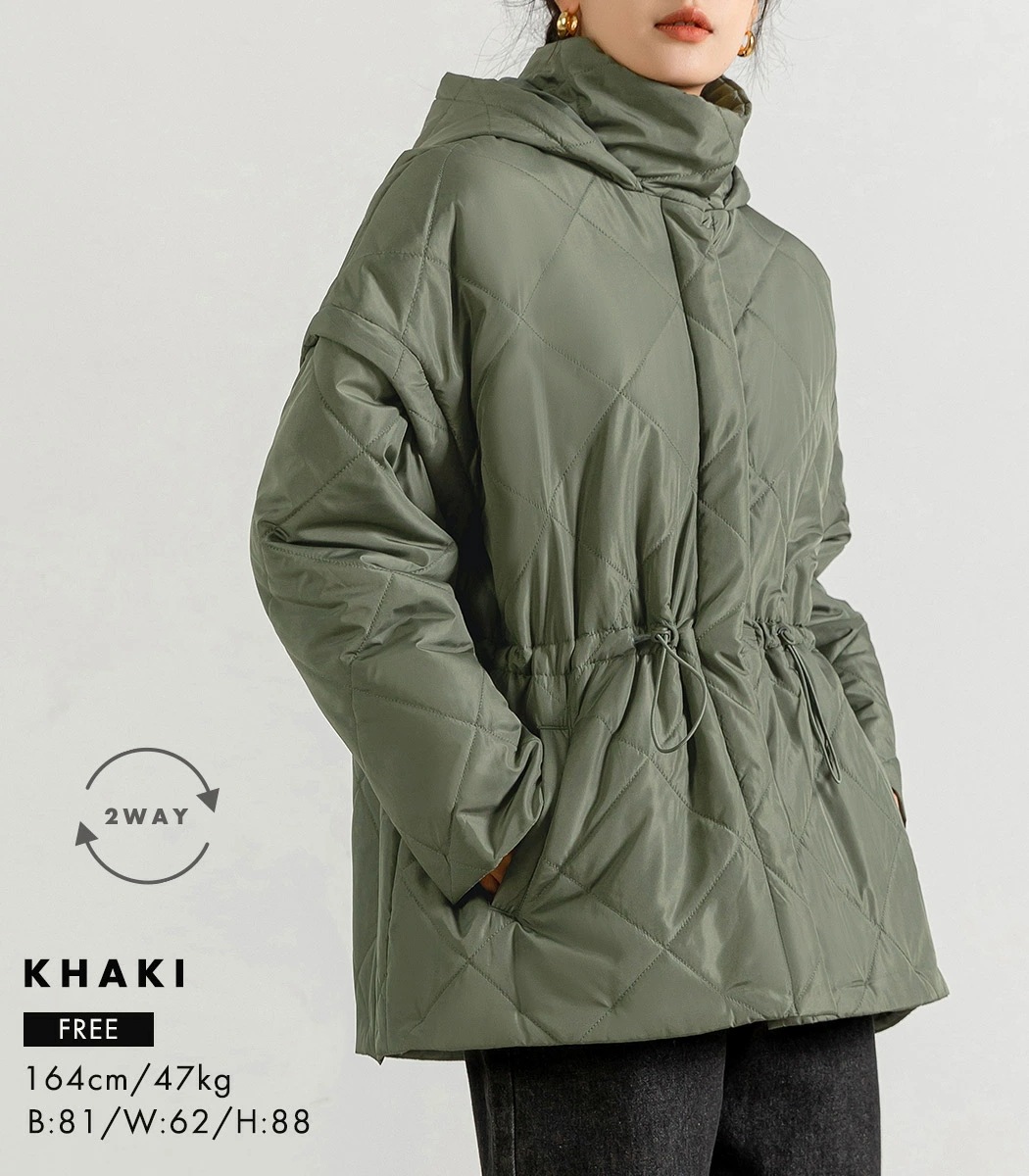 ,,キルティング ジャケット 2way 長袖 袖取り外し 半袖 ショートコート 上着 羽織り アウター レディース 防寒 暖かい ハイネック フード ポケット ドロップショ